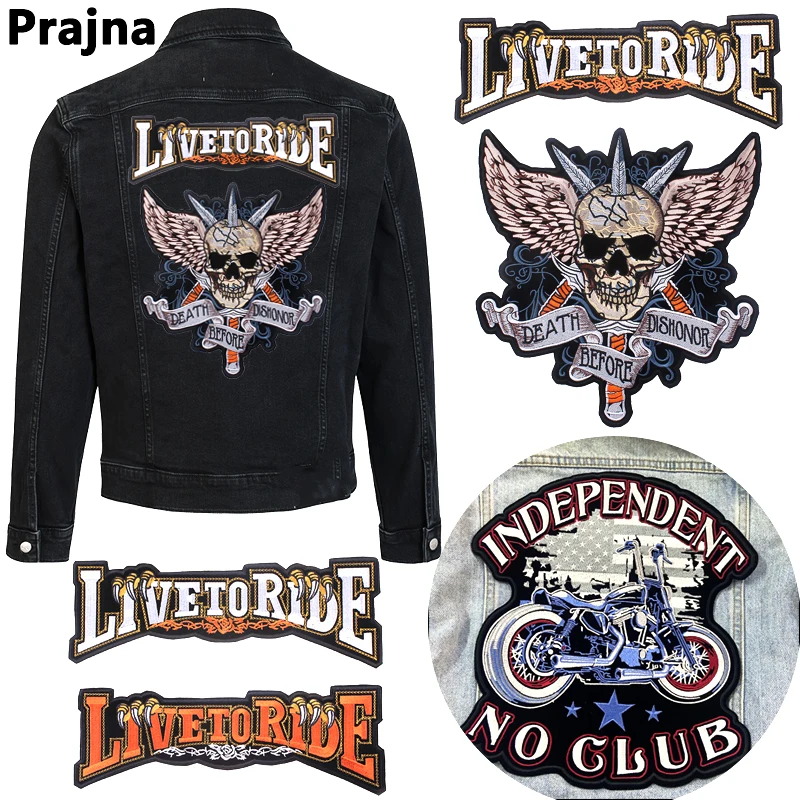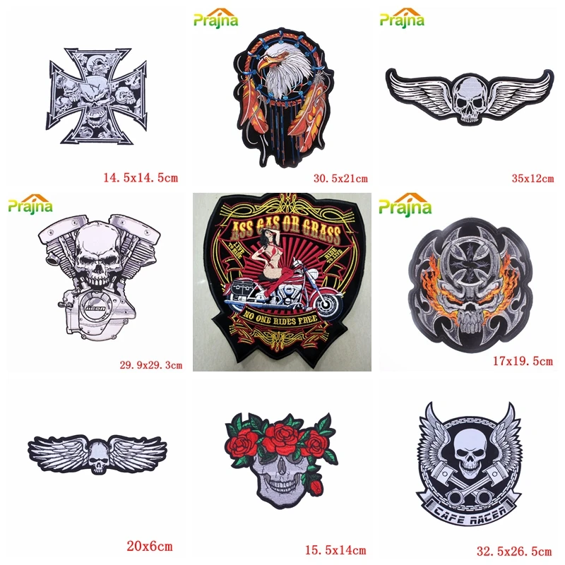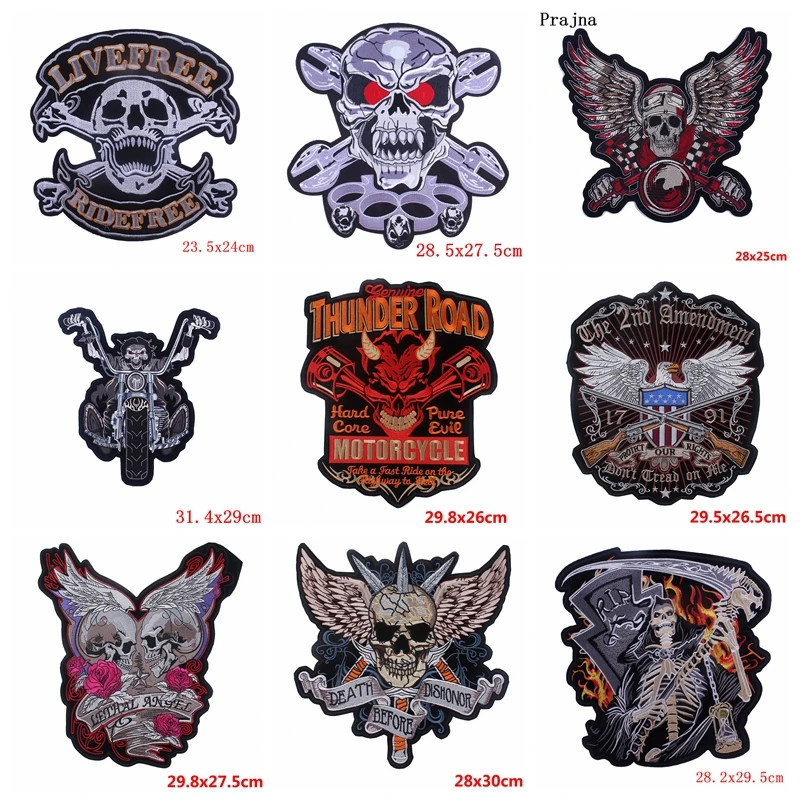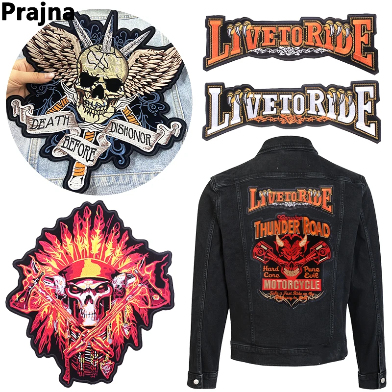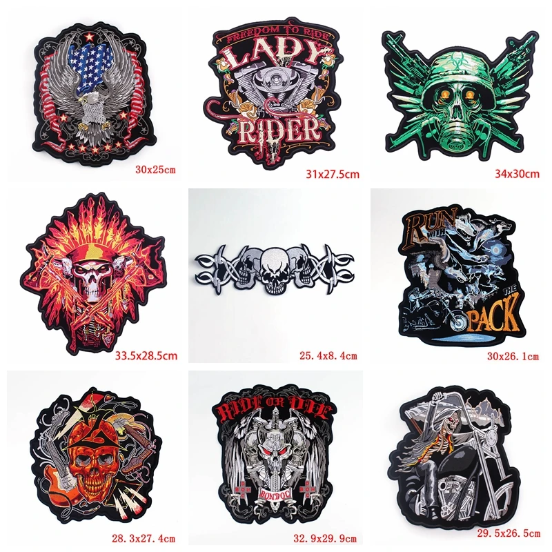 Parche bordado para motocicleta, parches para planchar para ropa, parche grande para la espalda, parches bordados de motorista con calavera Punk, insignia para ropa