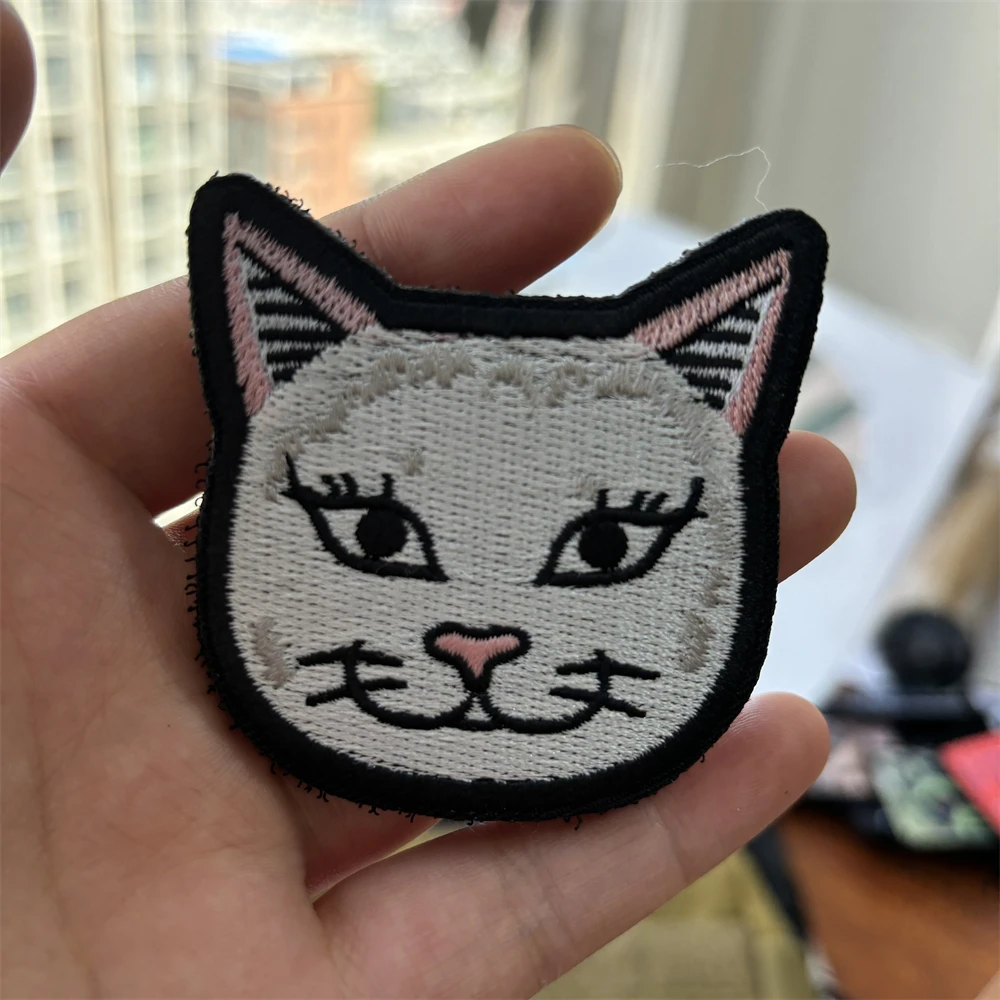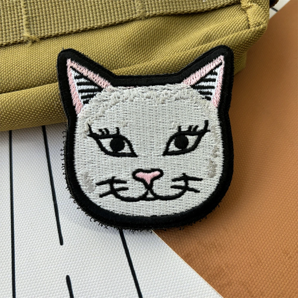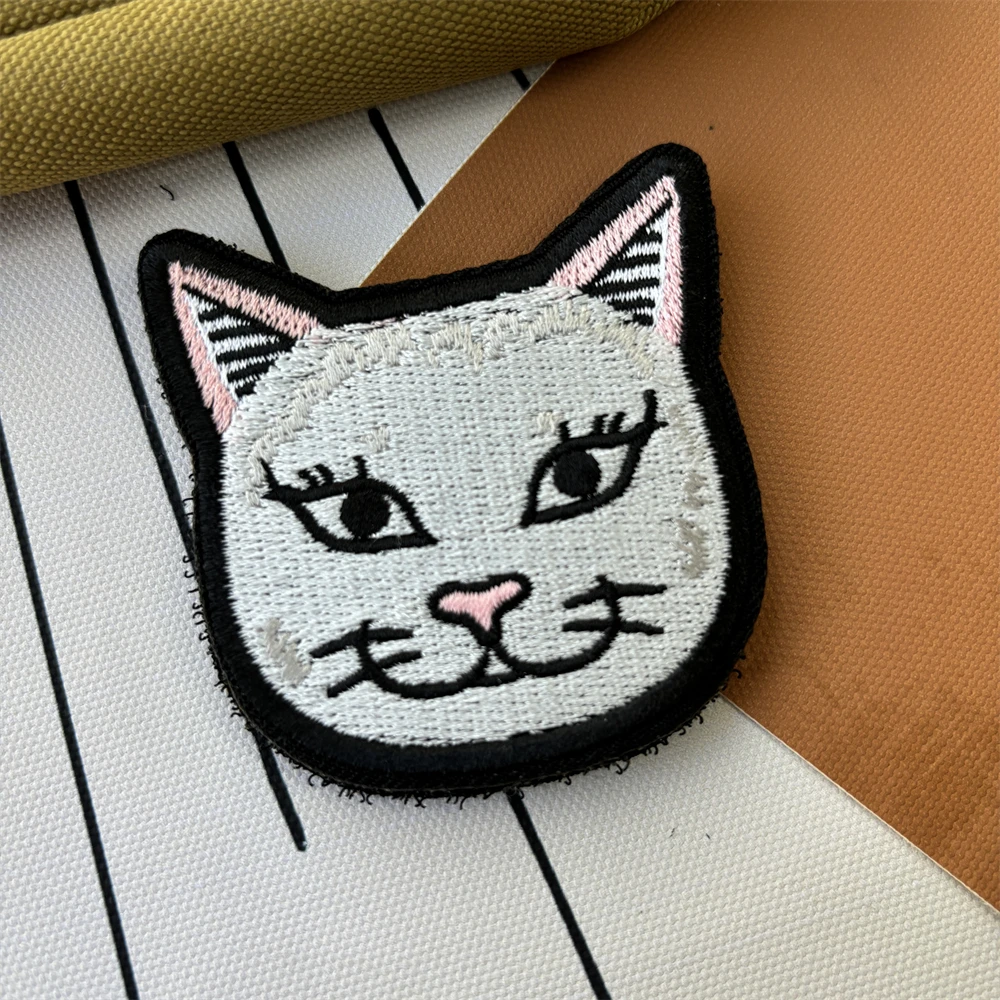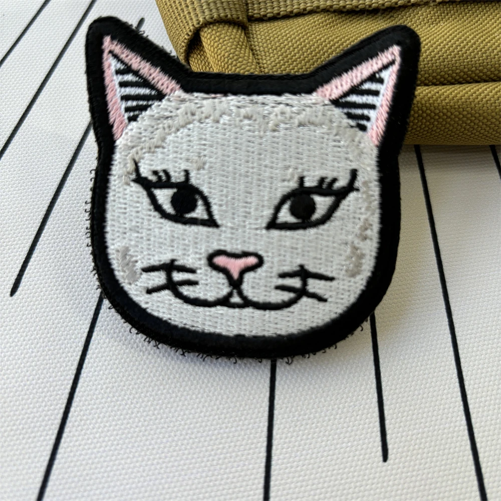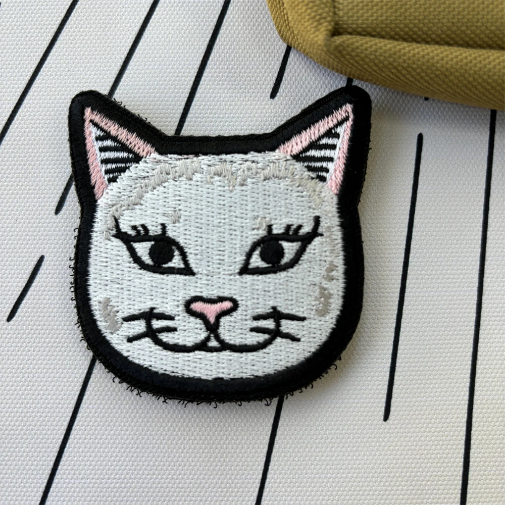 Parche bordado con orejas de gato blanco y rosa, parches de gancho y bucle de gatito lindo, brazalete táctico militar del ejército, pegatinas de mochila DIY
