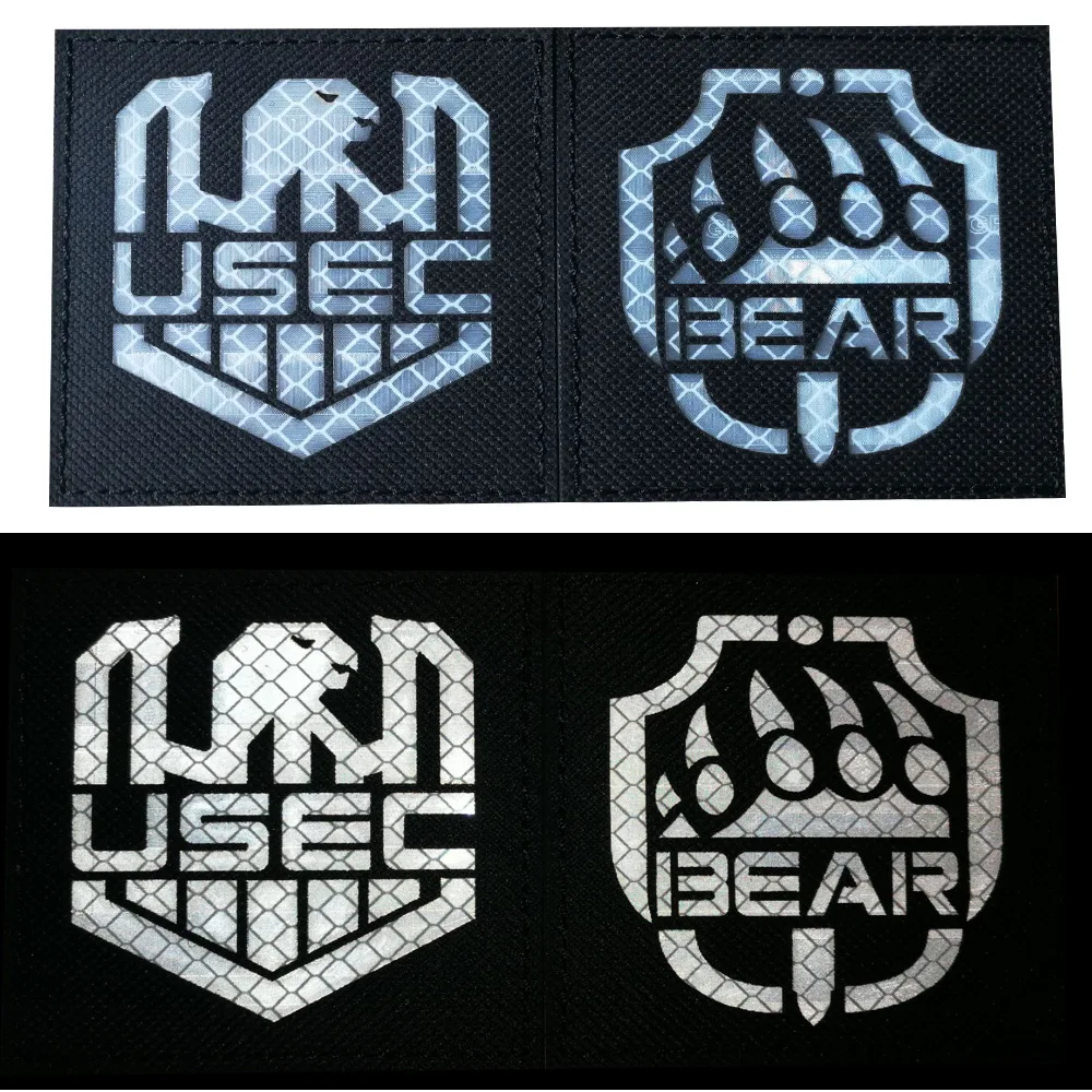 Parche con bordado de oso, parche de PVC reflectante infrarrojo, parche táctico, IR, Rusia, Escape de Tarkov utec