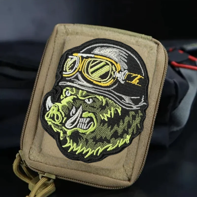 Parche bordado de oso rugido, insignia de moral táctica de gancho y bucle de jabalí, pegatina decorativa para mochila, parches para brazalete para ropa