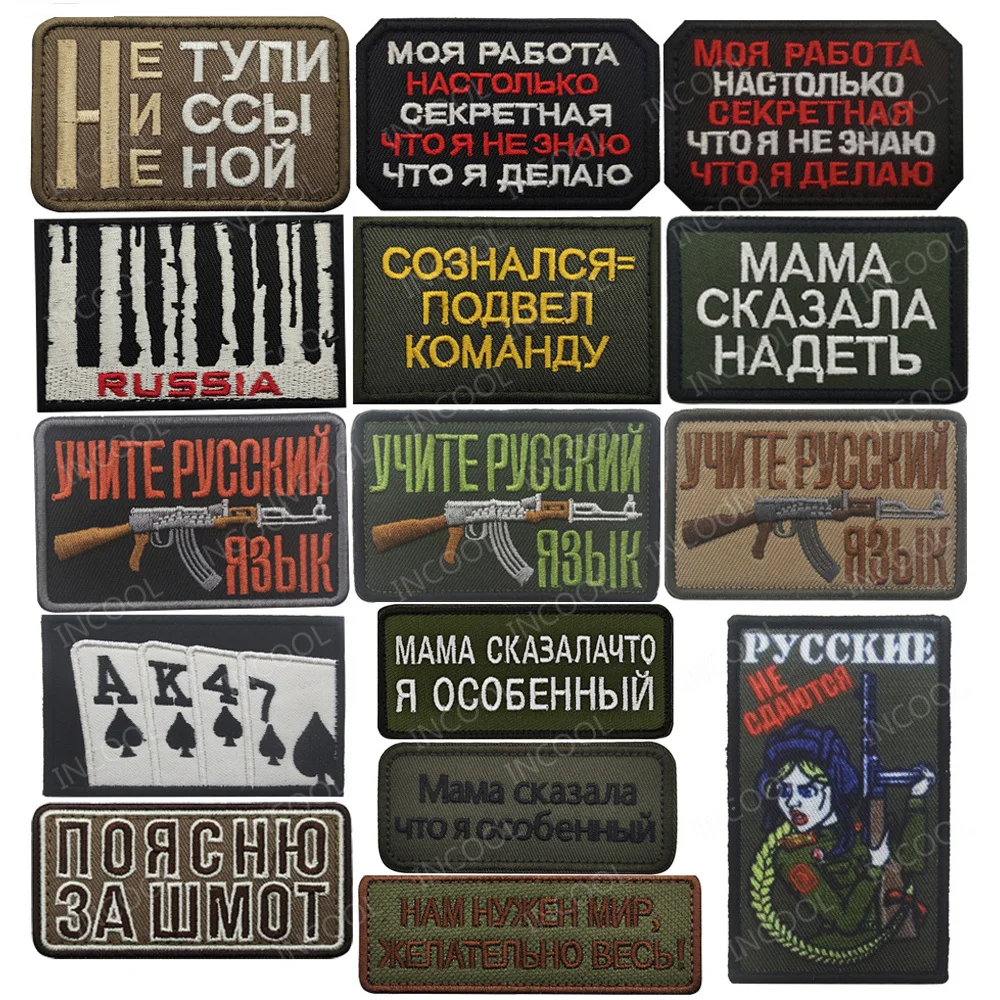 Parche bordado con palabras rusas, frases motivacionales, alfabeto de Rusia, parches de motorista, apliques de Chevron, insignia para gorra de chaqueta
