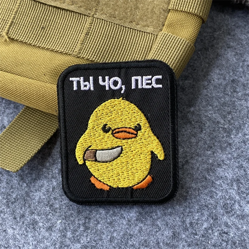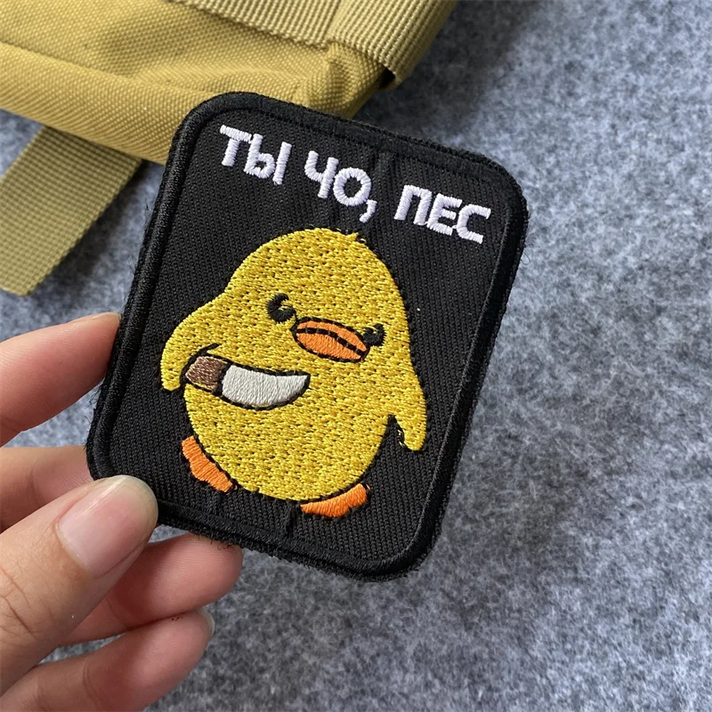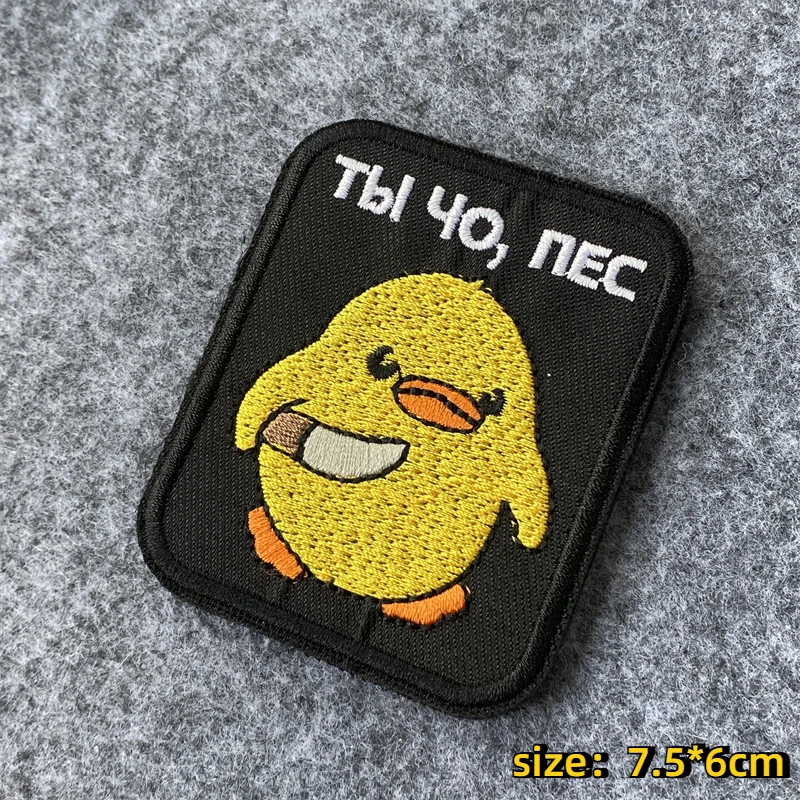 Violento pequeño pato amarillo bordado parche gancho y bucle tácticas moral insignia brazalete ropa mochila pegatina decorativa