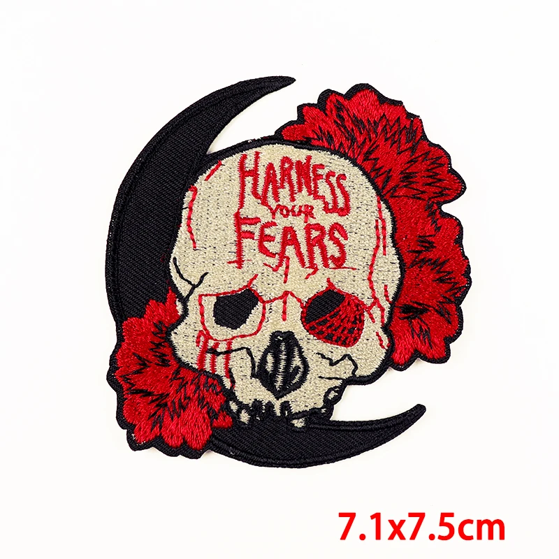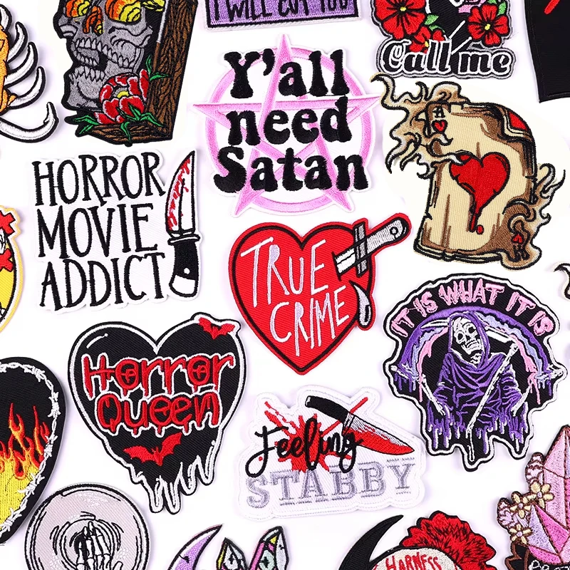 Parche bordado de película de terror, parche con letras Punk, parches para planchar en ropa, parches bordados de fantasma de calavera en ropa, chaqueta DIY