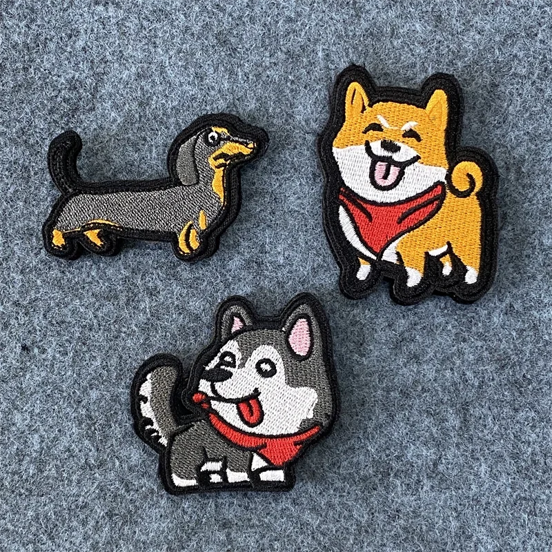 Parche bordado de Dachshund, pegatina de perro bonito, insignia de ropa para niños, brazalete de gancho y bucle, pegatina para mochila, decoración Diy