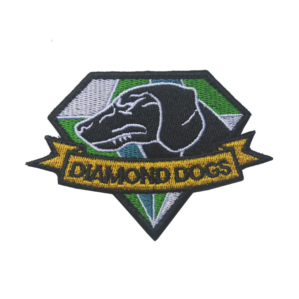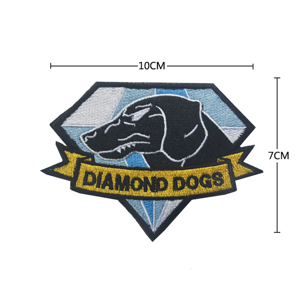 Parche bordado de perros de diamante, engranaje de Metal sólido MGS, parches de bucle de gancho, apliques tácticos, insignias de emblema para chaqueta, mochila