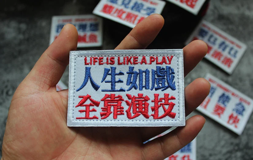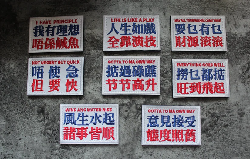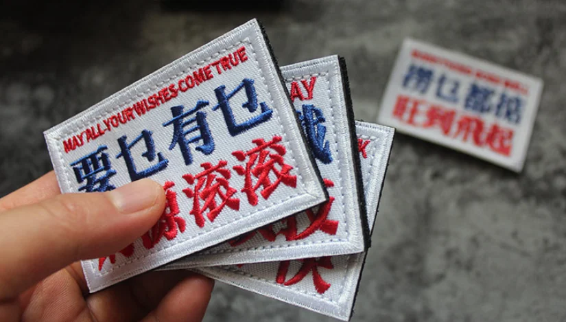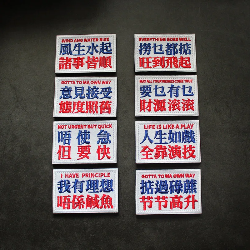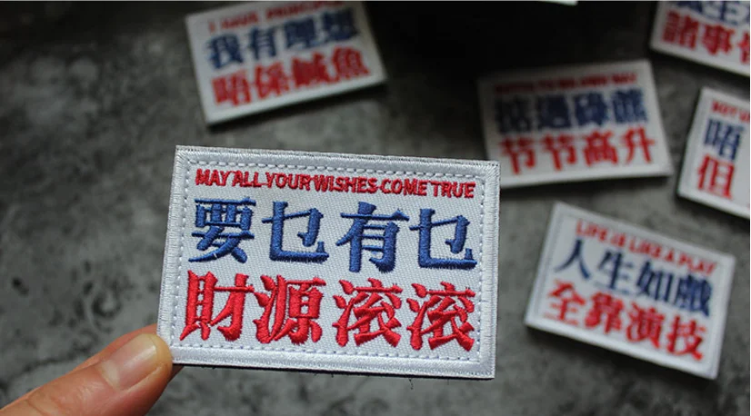 Parche bordado de personajes chinos tradicionales, insignias tácticas de la buena suerte, brazalete para ropa y mochila