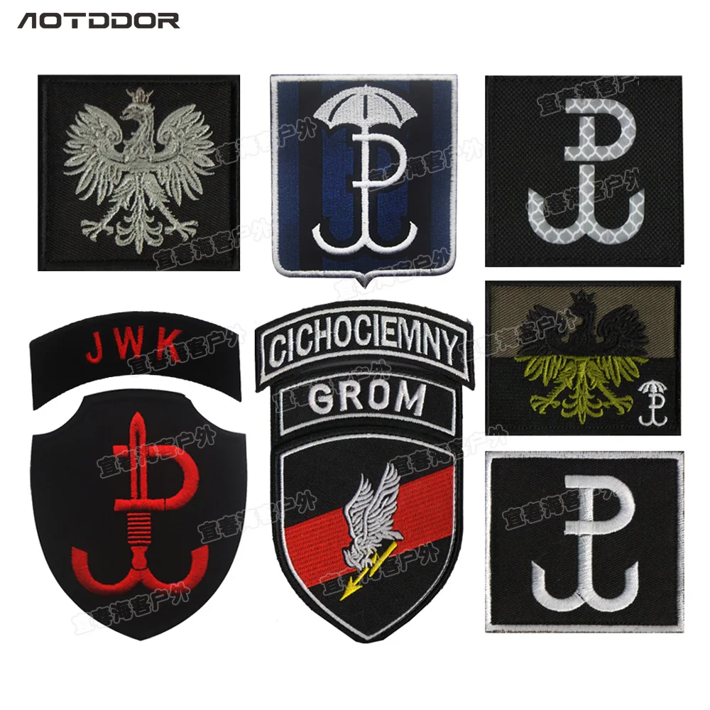 Parche bordado de Polonia GROM, insignia de brazo TF-9, insignia de moral reflectante militar, parches bordados para ropa, bordado de costura