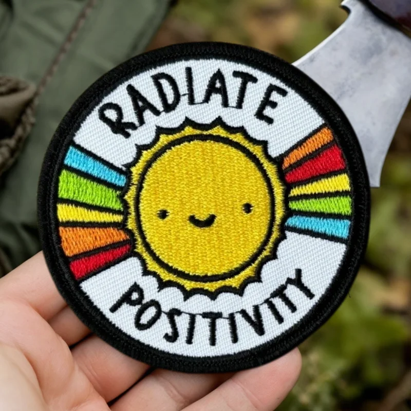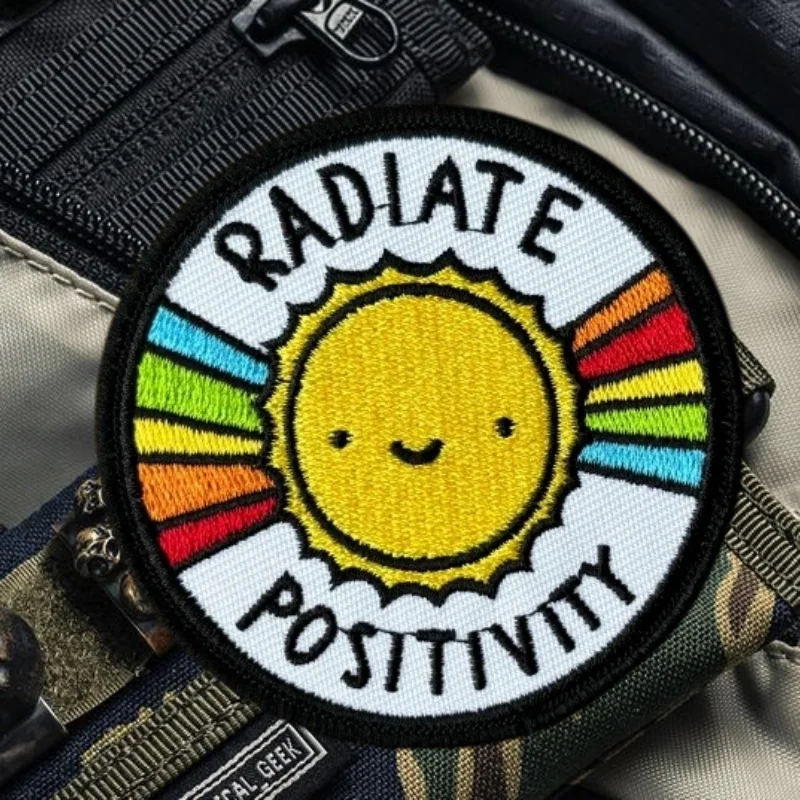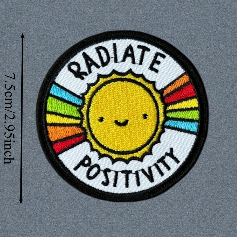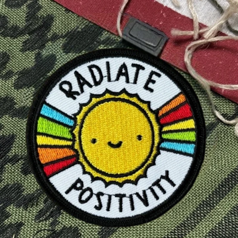 "POSITIVIDAD RADIA" Parche de bordado Insignia de moral de gancho y bucle táctico Mochila Pegatinas decorativas Parches de brazalete para ropa
