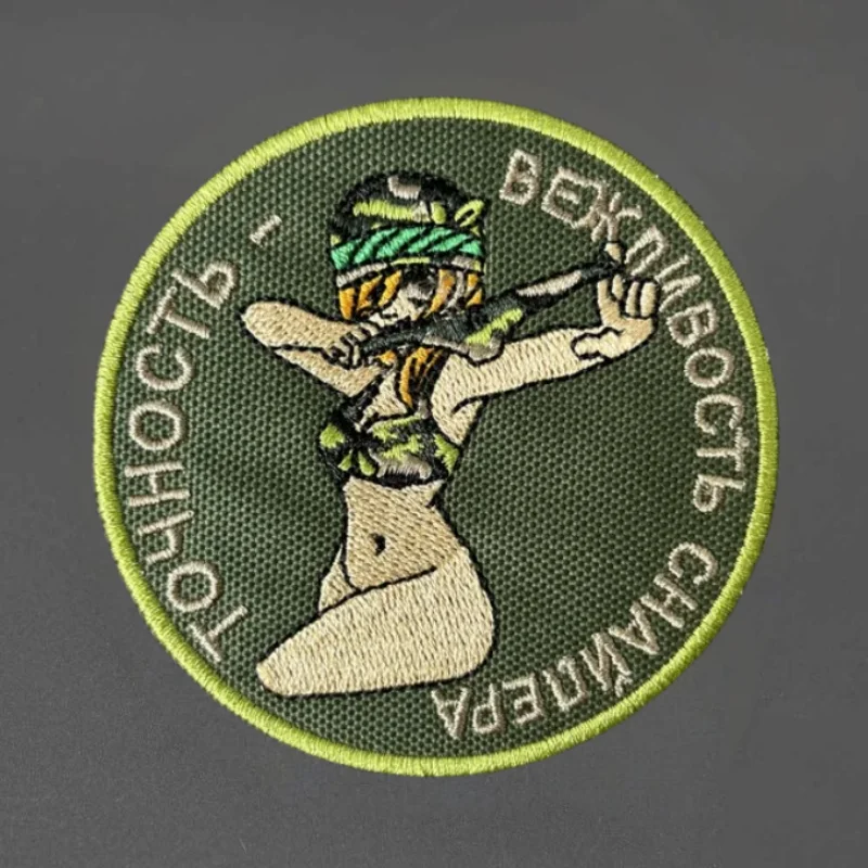 Precisión y cortesía de un parche bordado de sniper, insignia táctica de gancho y bucle, insignia de moral, pegatina para mochila, parches para brazalete para ropa
