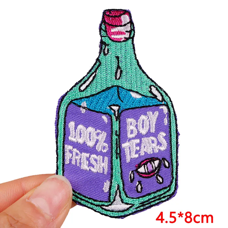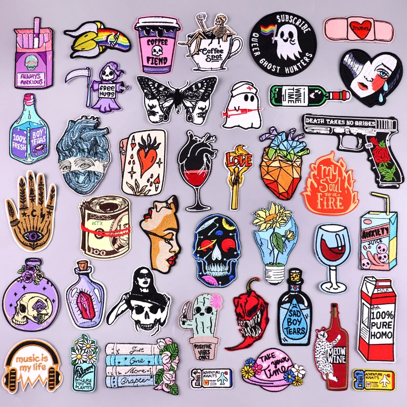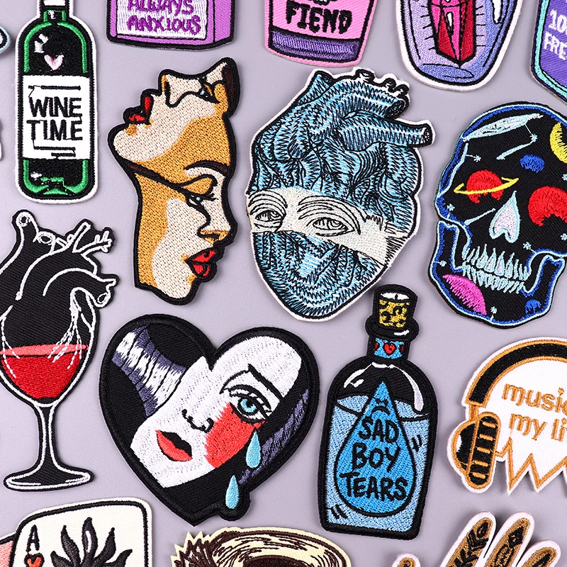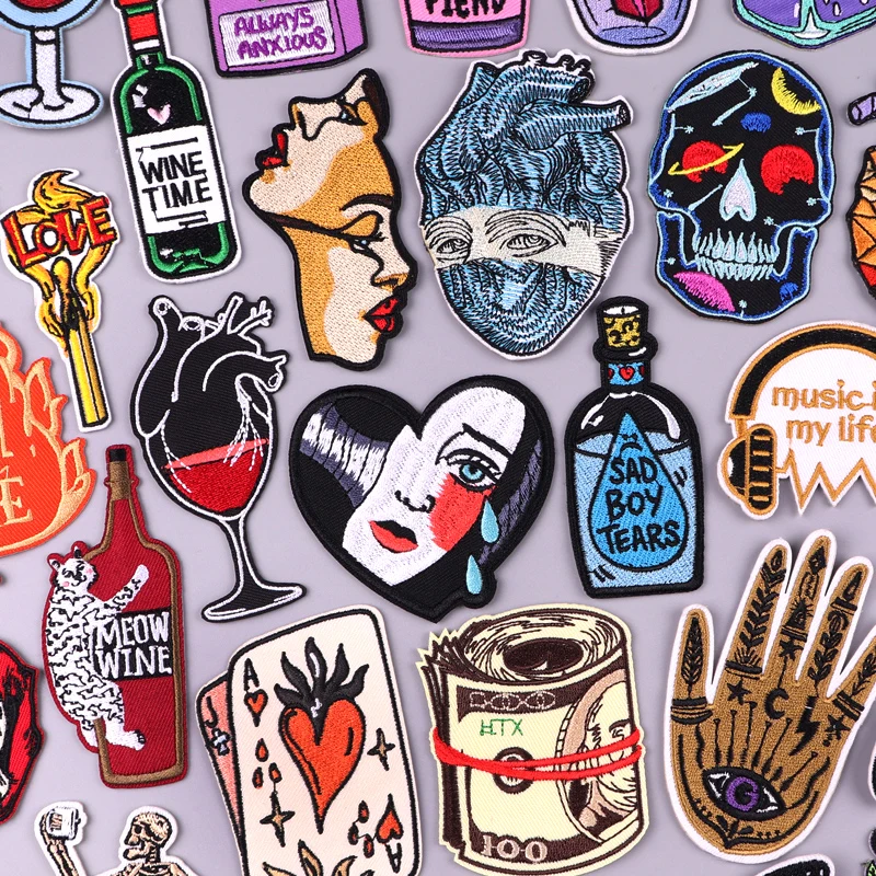 Parche bordado Punk/corazón, parches termoadhesivos para ropa, parches termosadhesivos para ropa, parche de dibujos animados/botella, apliques de costura DIY