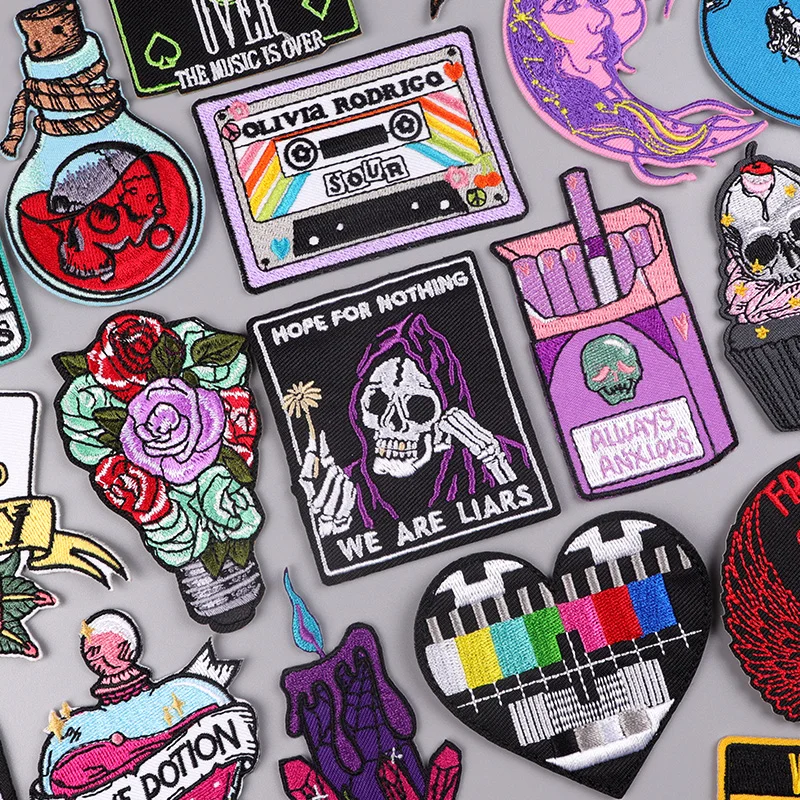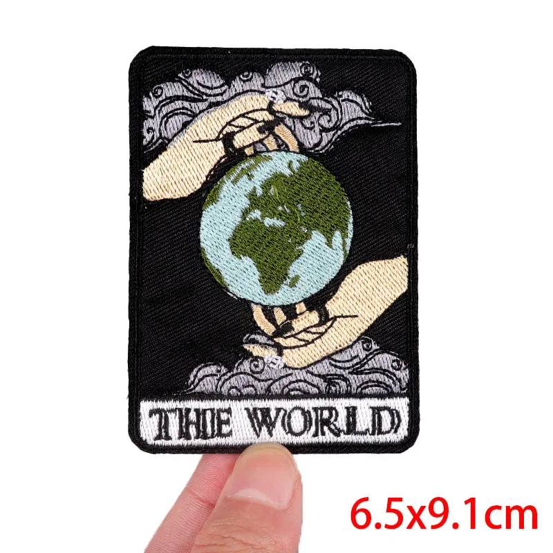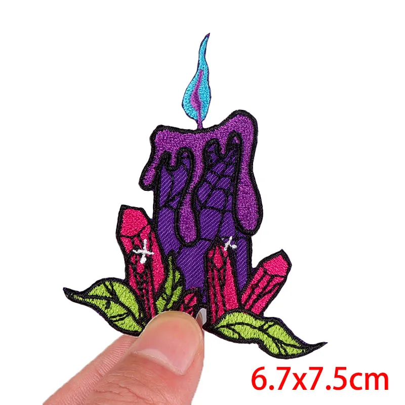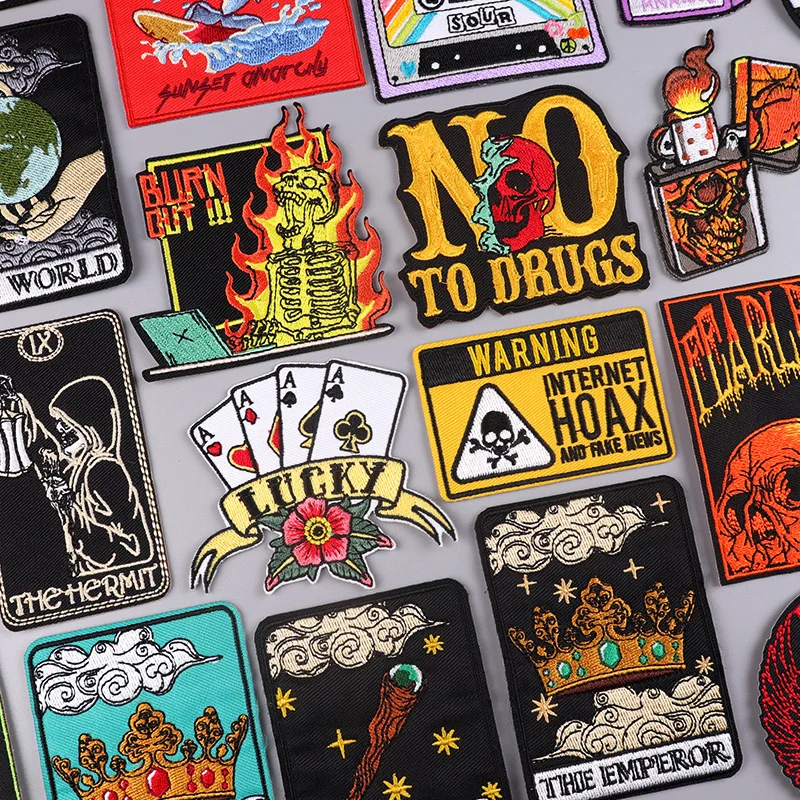 Parche bordado Punk/fuego, parche de calavera, parches para planchar para ropa, parches termoadhesivos para ropa, pegatina bordada de Tarot