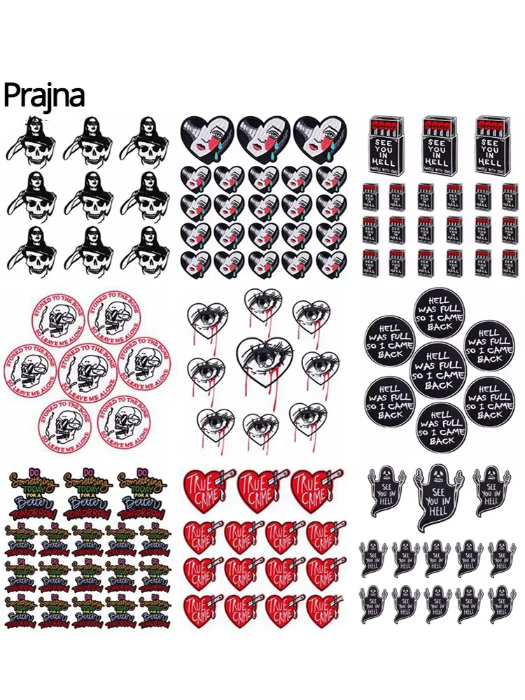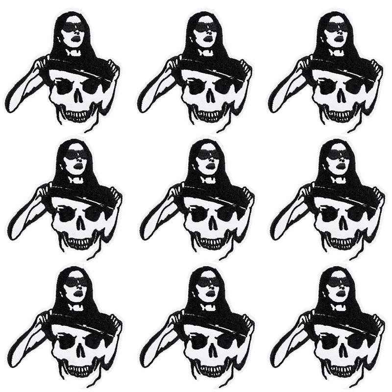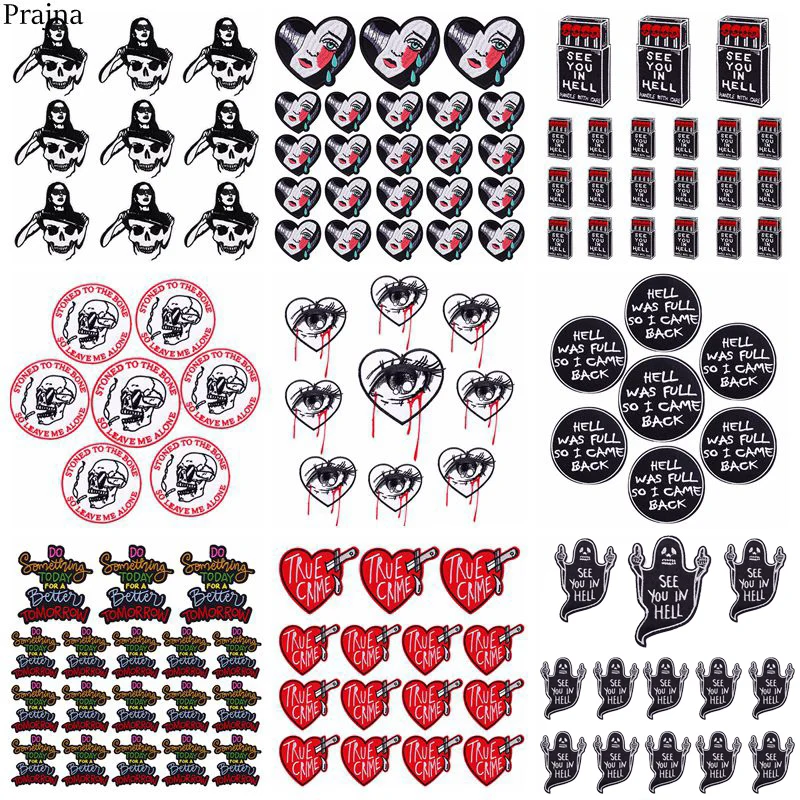 Parche bordado Punk con letras, parches termoadhesivos para planchar en la ropa, pegatinas de costura de Calavera, 10 unids/lote