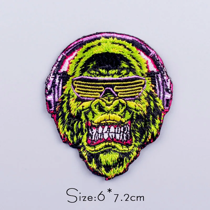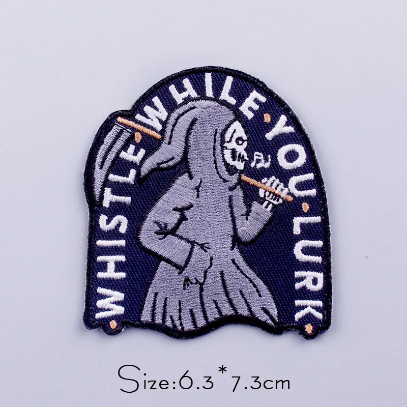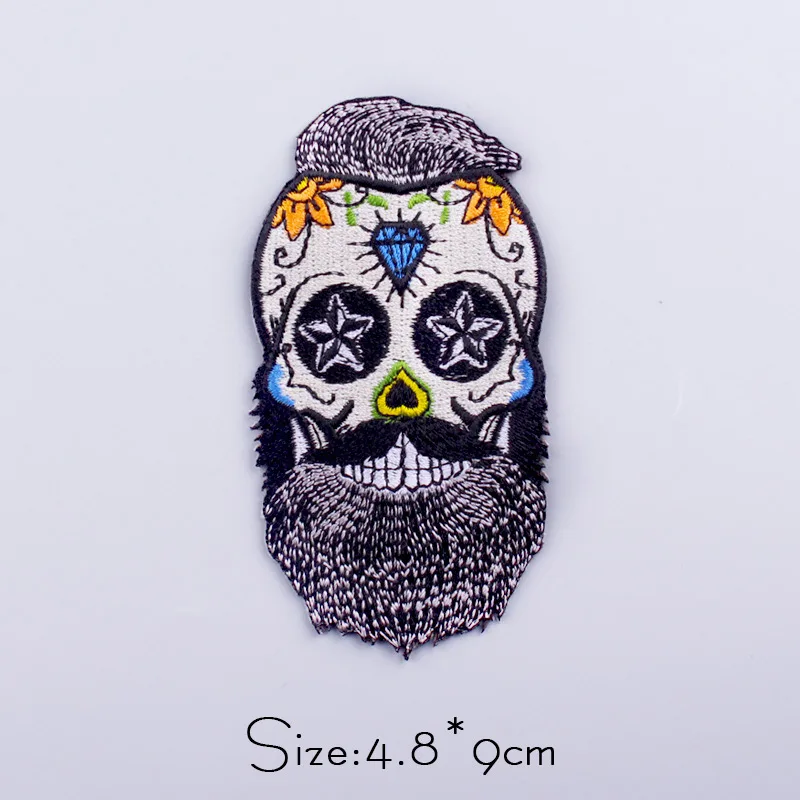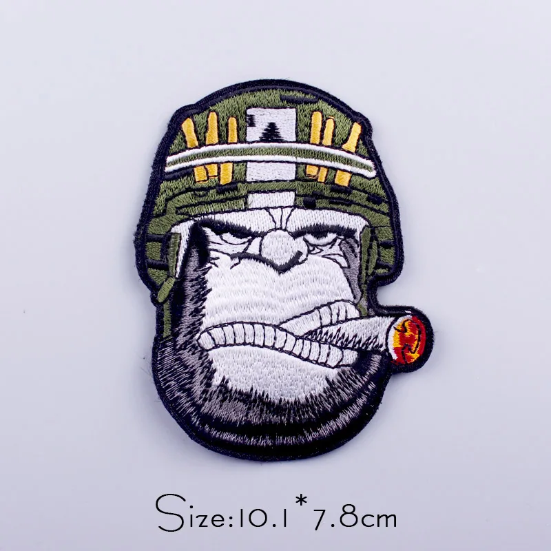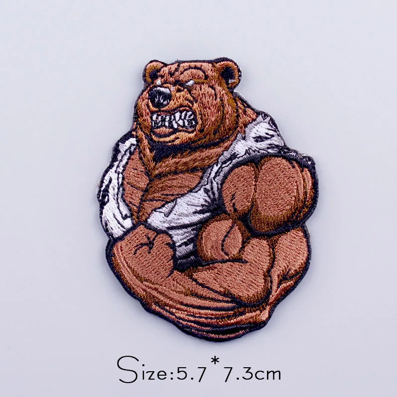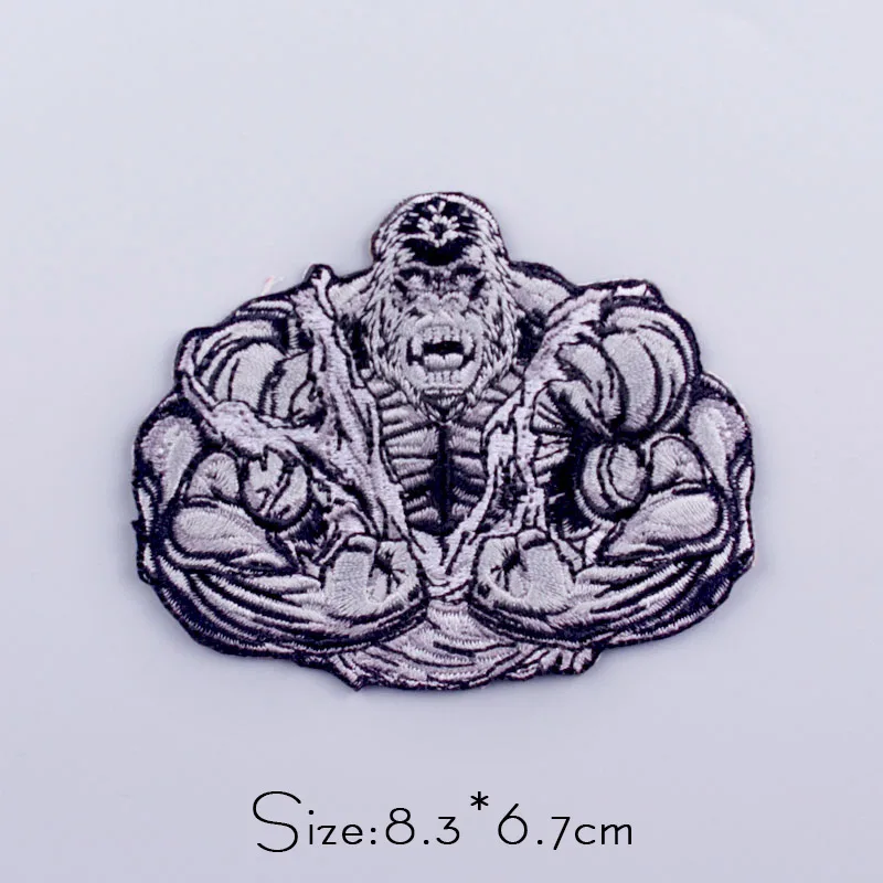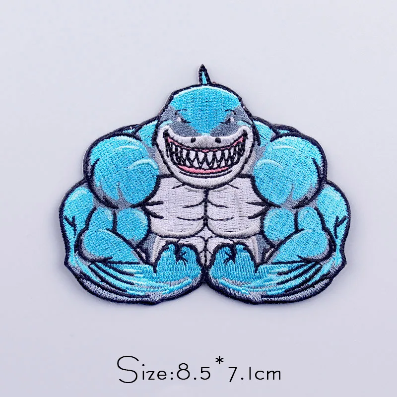 Parche Punk de oso fuerte/tiburón, parches bordados para ropa, Parche de esqueleto, parches para planchar en la ropa, apliques, insignia, costura