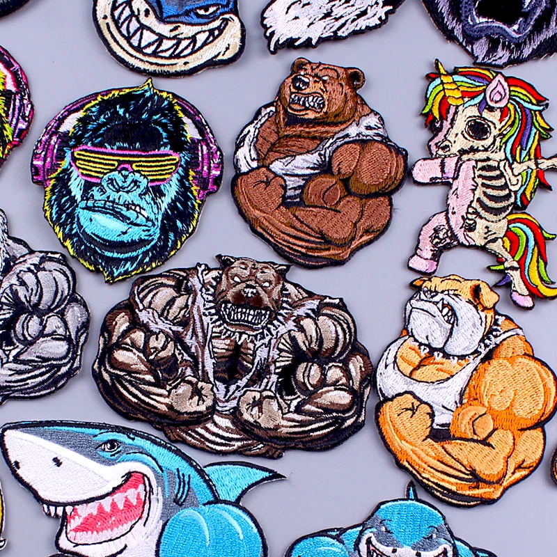 Parche Punk de oso fuerte/tiburón, parches bordados para ropa, Parche de esqueleto, parches para planchar en la ropa, apliques, insignia, costura