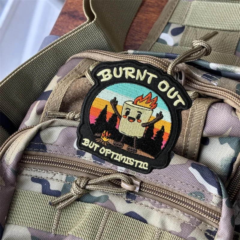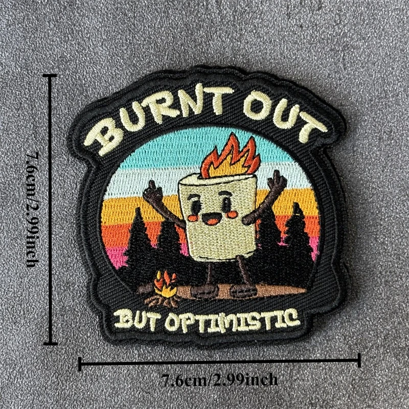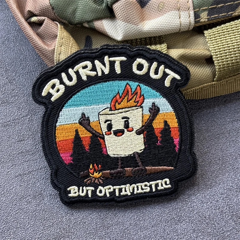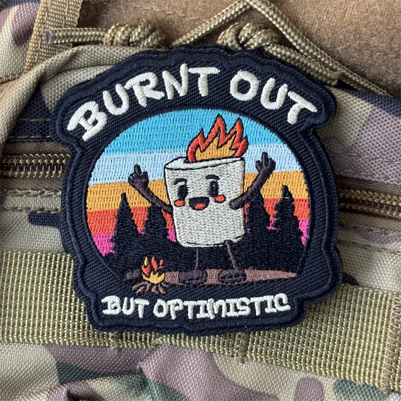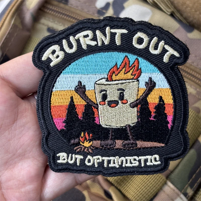 Parche bordado "con quemado pero optimista", insignia de moral táctica, parche militar con gancho, ropa, mochila, pegatinas, brazalete