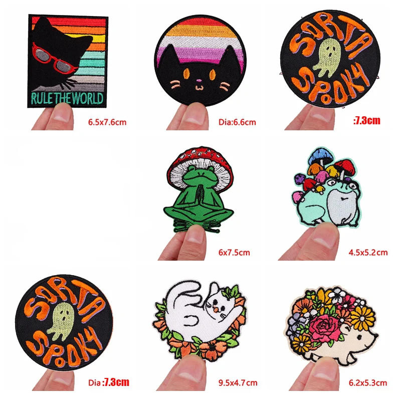 Frog/Cat Embroidery Patch Cartoon Animal Patch Iron On Patches For Clothing Thermoadhesive Patches On Clothes Jeans Sew Stickers