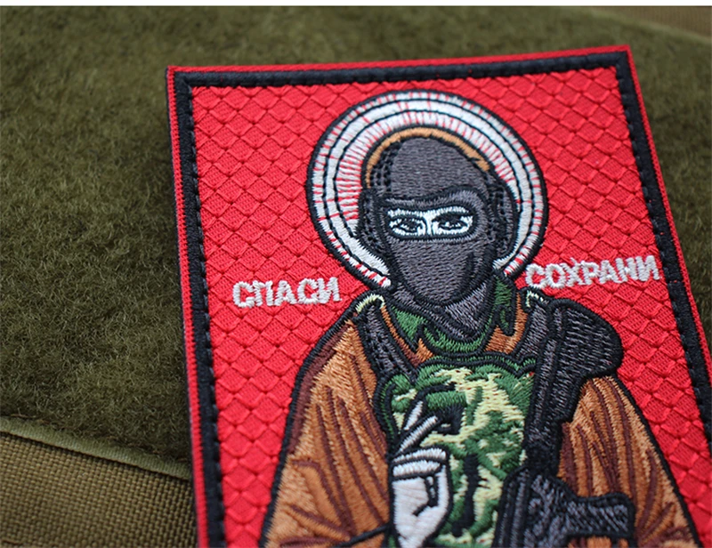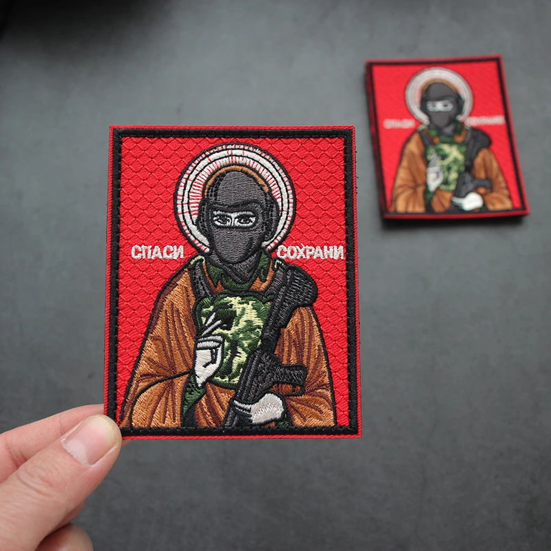 Parche bordado de rescate de guerrero enmascarado ruso, brazalete de la guerra de Dios, insignia táctica para bolsa, decoración de ropa