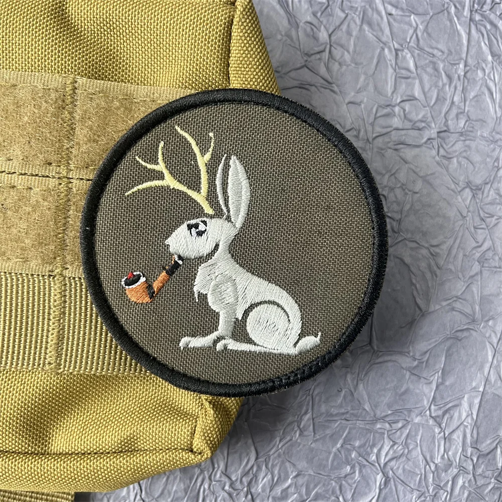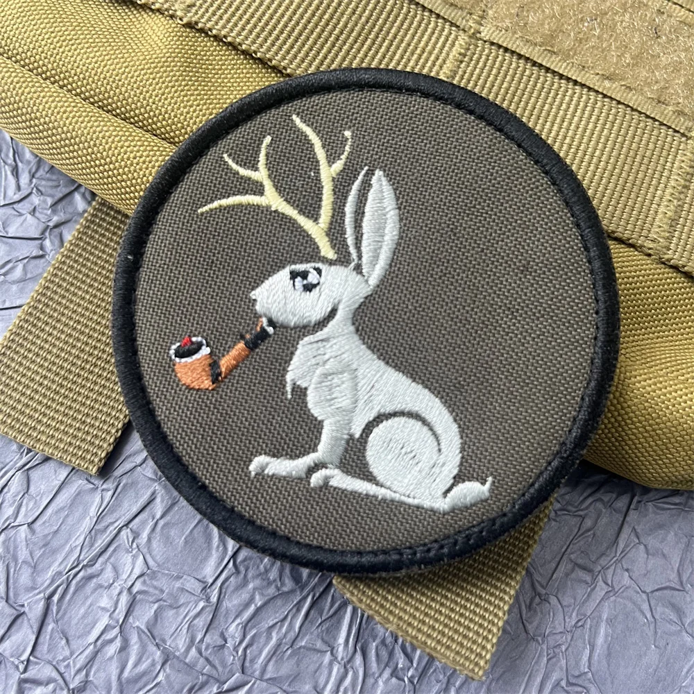 Parche bordado de conejo de asta de ciervo RG en ropa artículos militares tácticos parches de gancho y bucle mochila insignias de dibujos animados