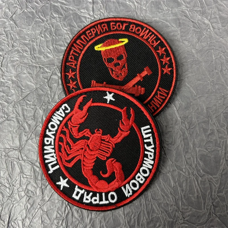 Parche bordado rojo de escorpión de calavera, insignia militar táctica de moral, parches de gancho y bucle, pegatinas para mochila para ropa