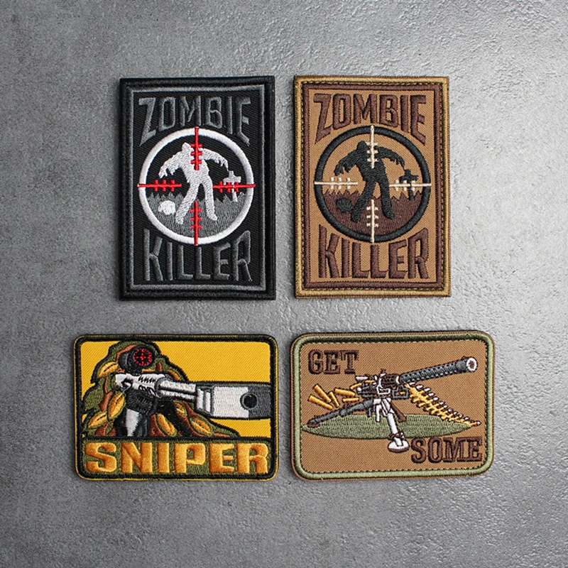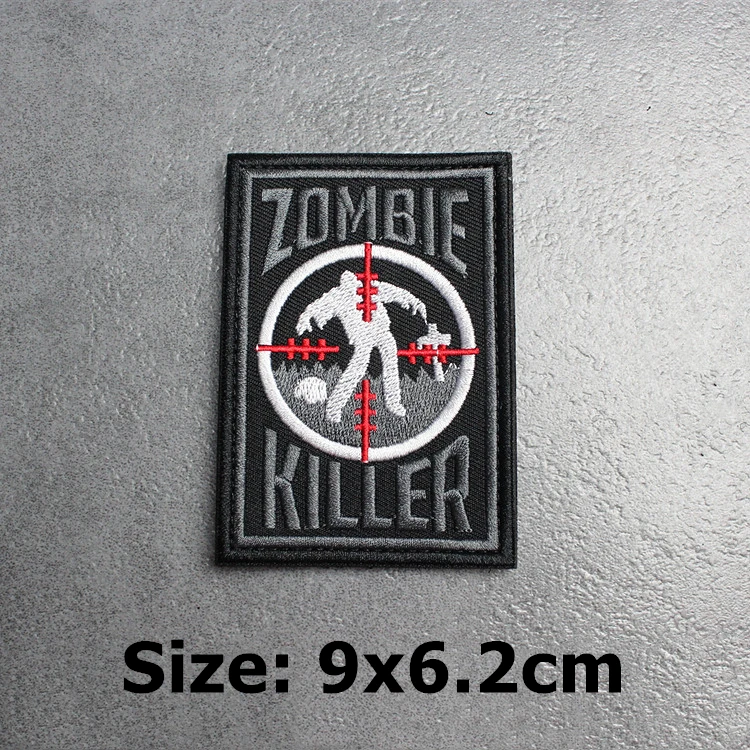 Parche bordado para ropa, mochila, decoración, pistola láser, insignia táctica de tiro, objetivo de francotirador, Killer Zombie