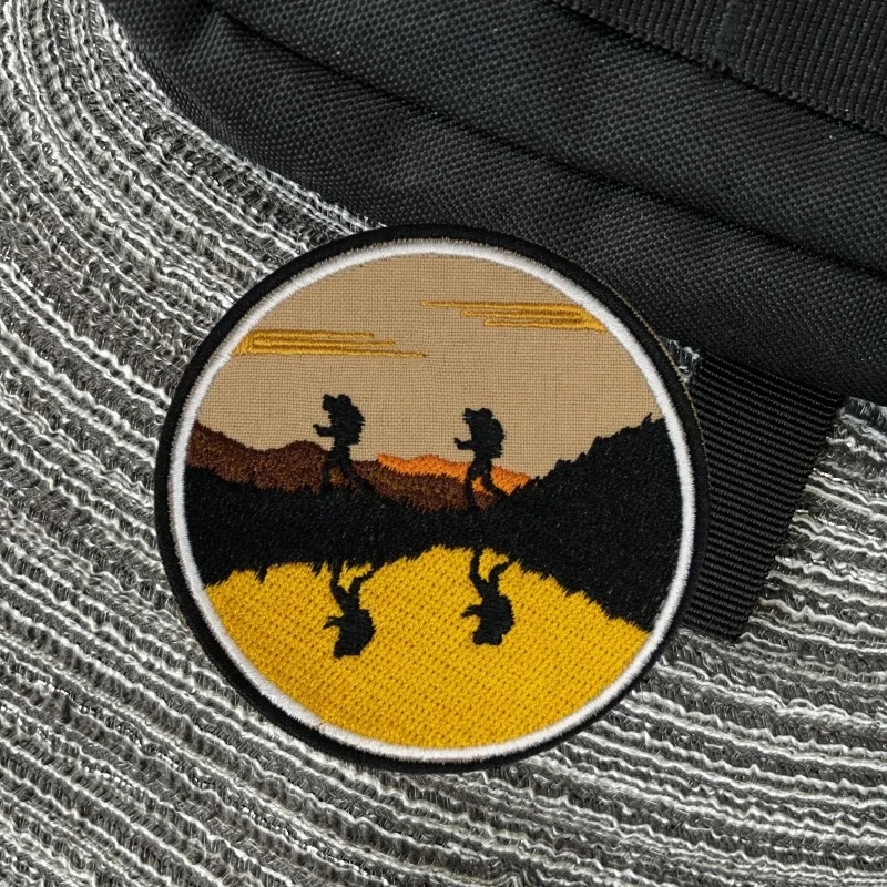Parche bordado para senderismo al atardecer, parches de gancho y bucle, pegatinas para mochila, insignia de moral táctica, apliques para ropa