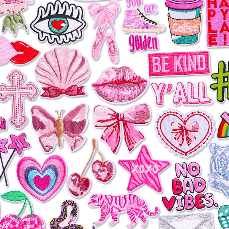 Parche bordado de la serie Rosa de dibujos animados, parches termoadhesivos para ropa, sombreros, chaquetas, bordado DIY