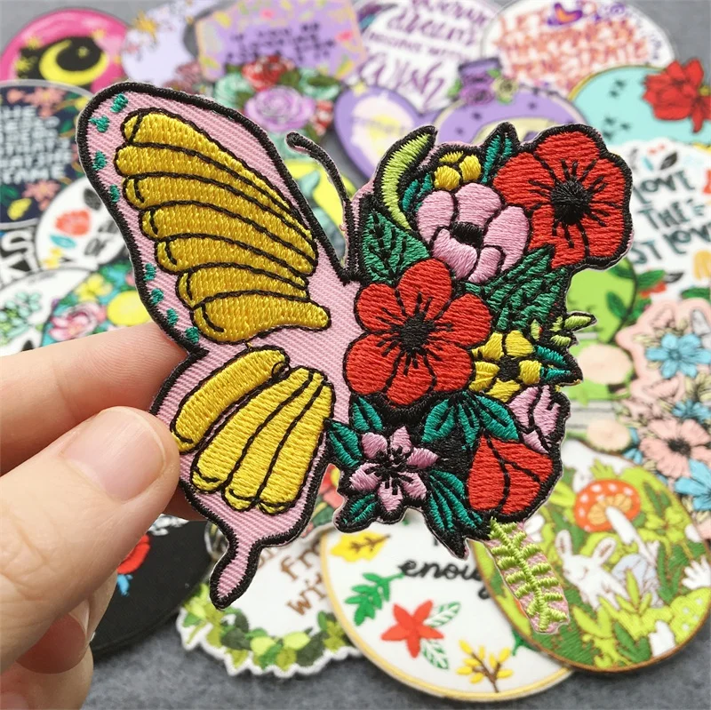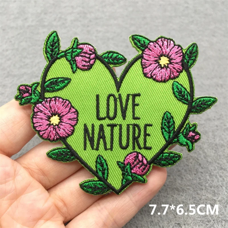 Parche Love Nature, parches bordados de setas mágicas para ropa, pegatinas para planchar DIY, apliques, flores, rayas