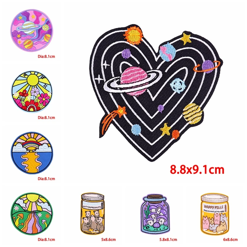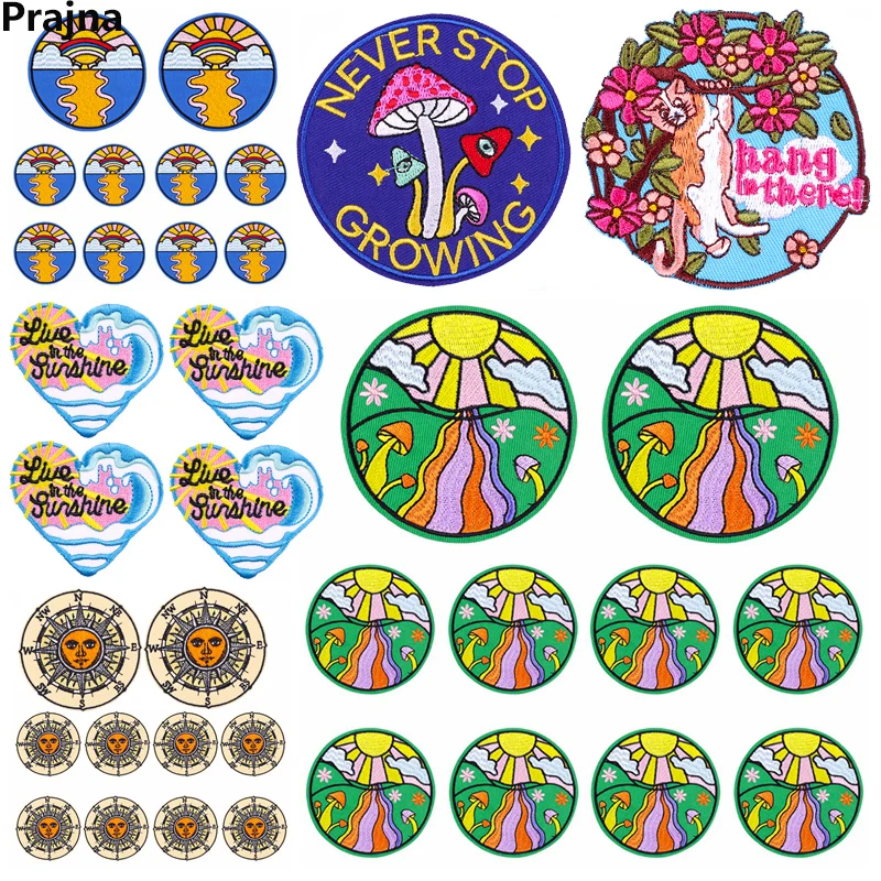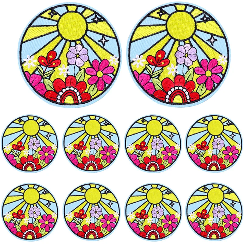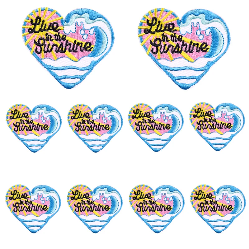 Parche bordado de setas de sol, parches termoadhesivos de dibujos animados para ropa, letras para planchar, bricolaje, 10 unids/lote