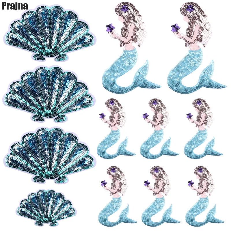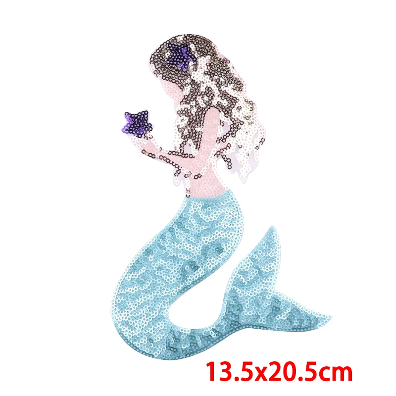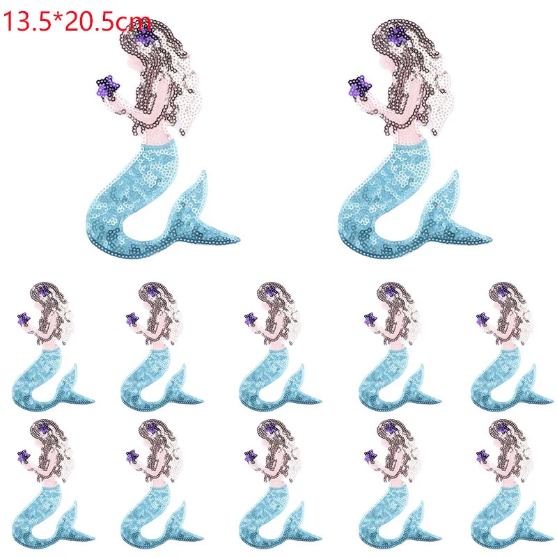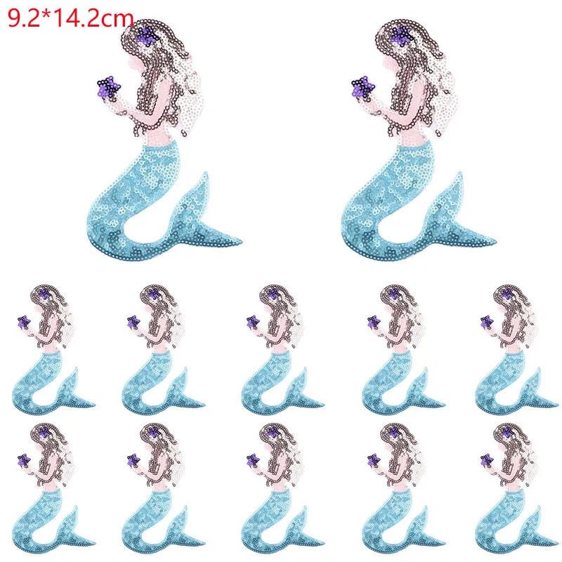 10 unids/lote parche bordado de sirena de lentejuelas DIY dibujos animados lentejuelas coser apliques parches para ropa Jeans accesorios decorativos