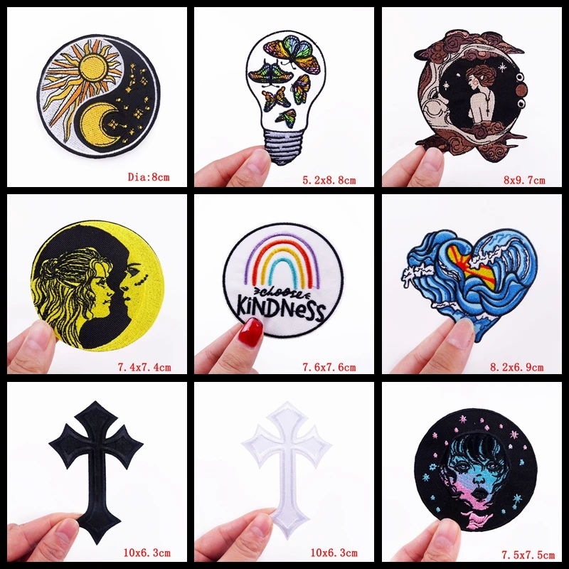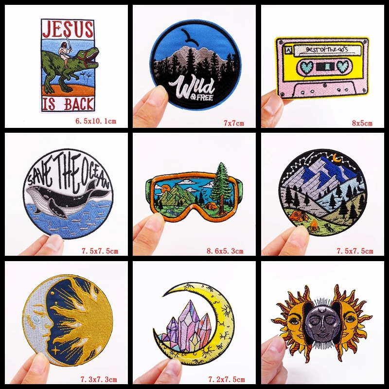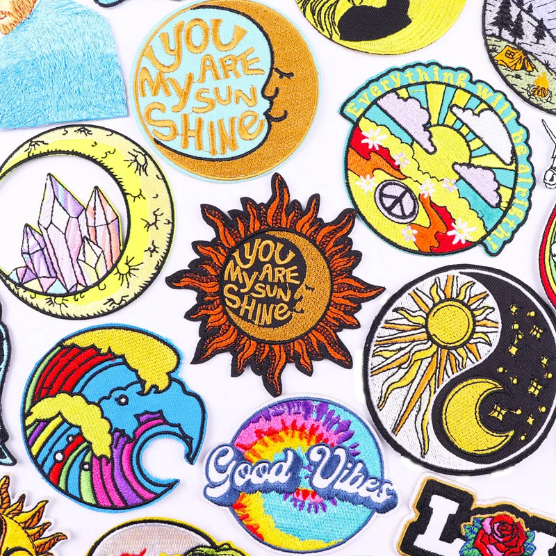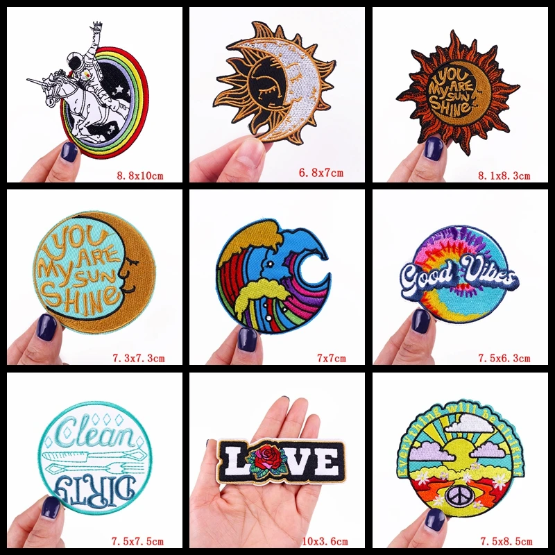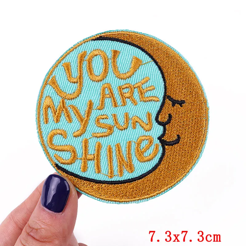 Parche bordado de sol y luna de dibujos animados, parches con apliques ondulados para ropa, parches termoadhesivos para ropa, insignias de letras, pegatinas