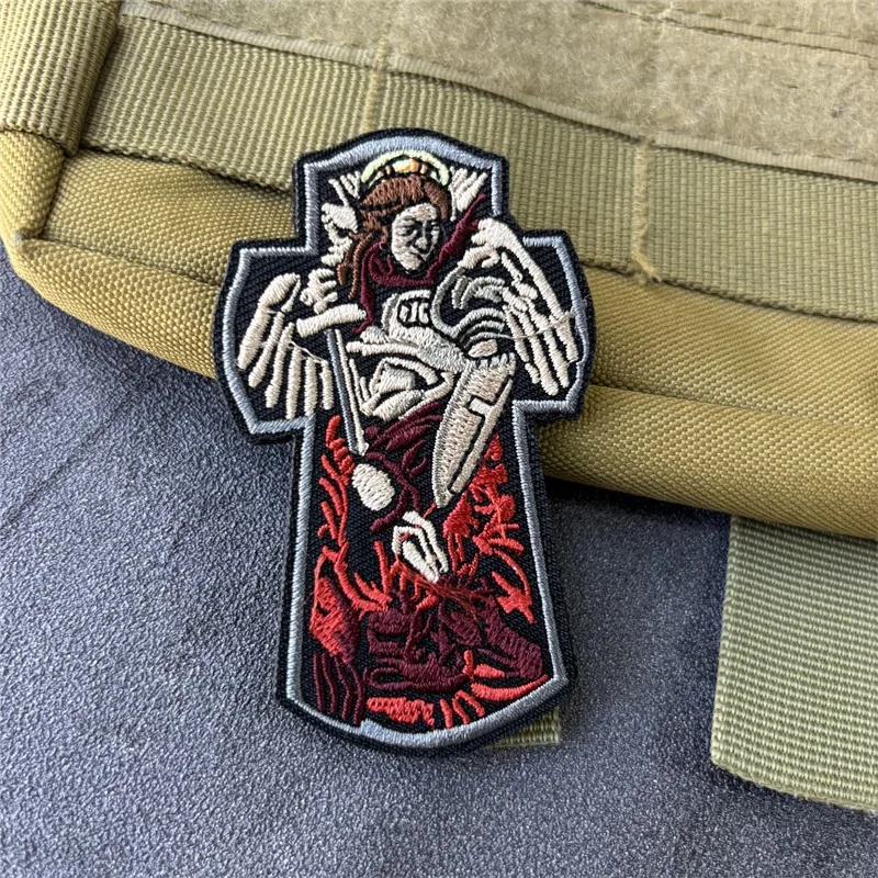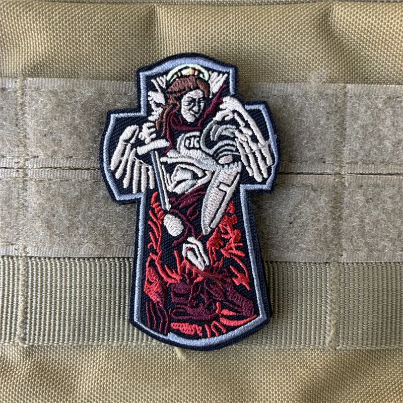 Parche bordado táctico del Arcángel Michael para ropa, insignias de moral, parches militares con gancho, pegatinas para mochila, brazalete