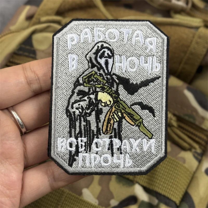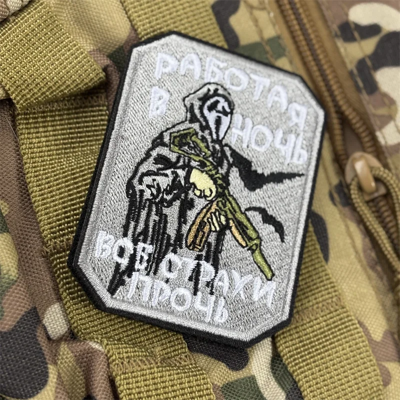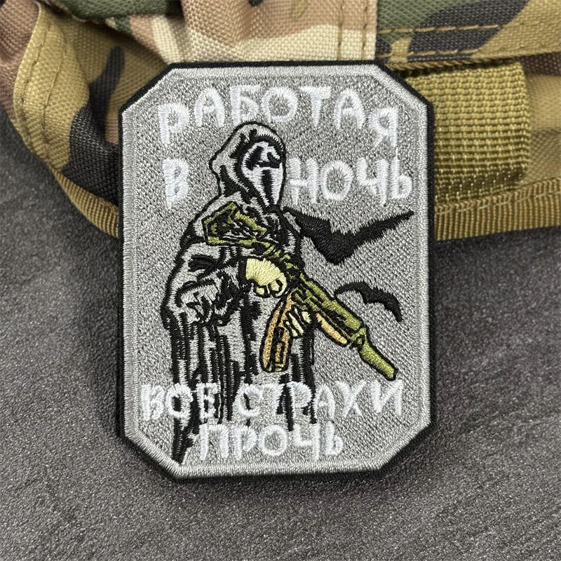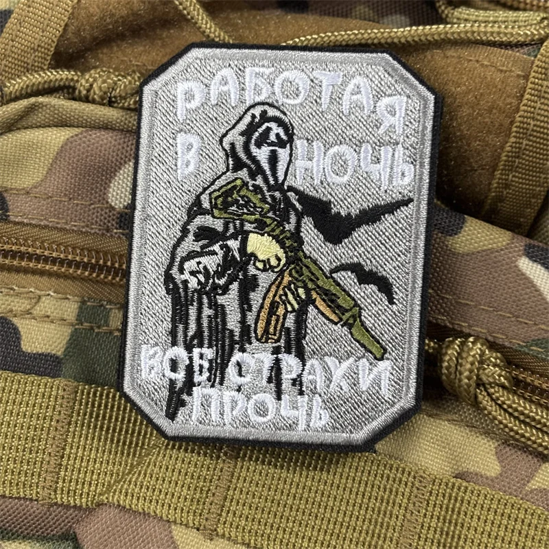 Parche bordado táctico "cráneo con pistola", insignia de moral para ropa, parches militares con gancho, pegatinas para mochila, brazalete