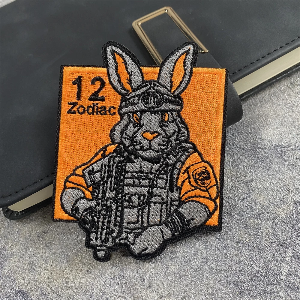 Parche bordado táctico del guerrero de la bestia del zodiaco, insignia de moral de conejo, brazalete, accesorios militares, gancho y bucle, pegatina de mochila