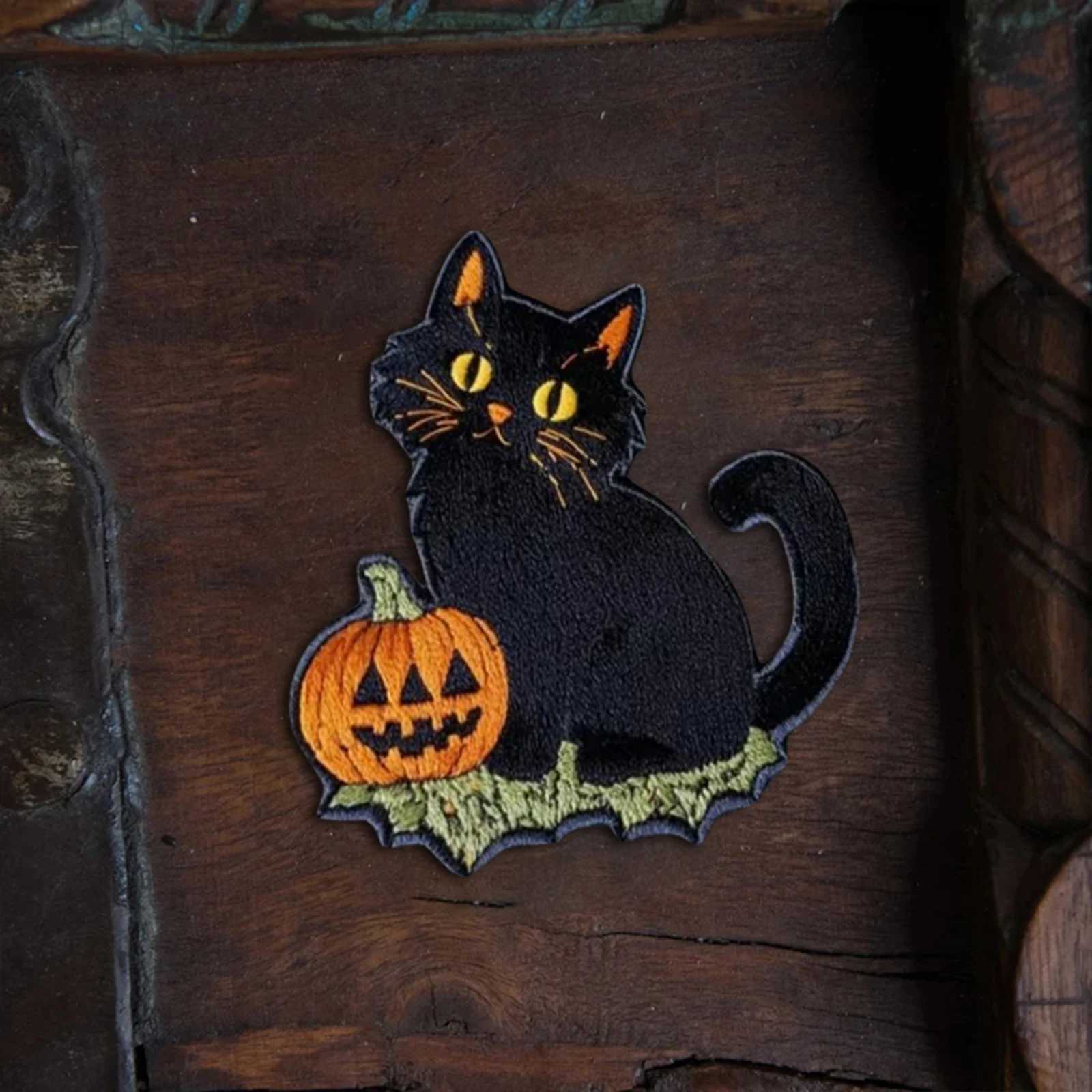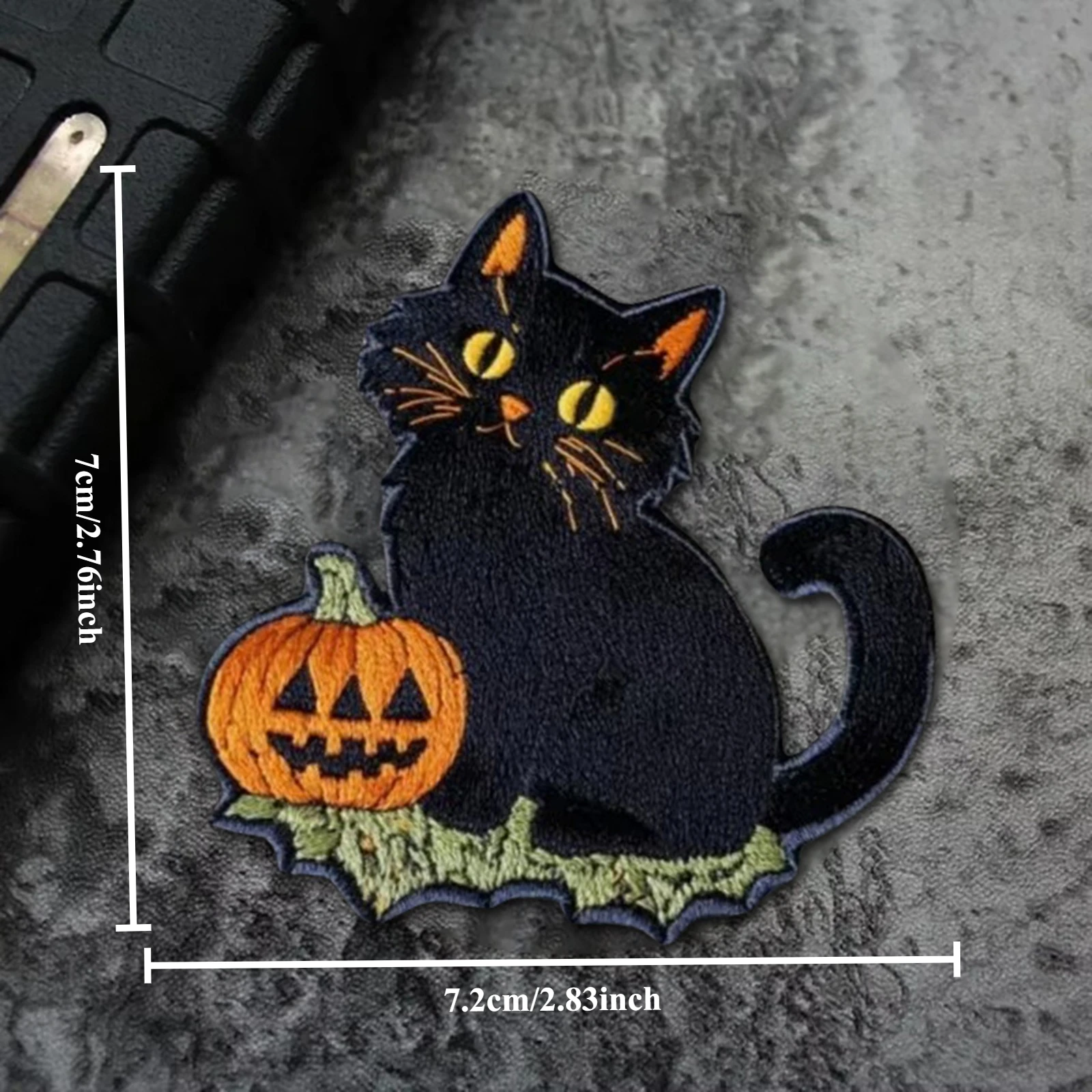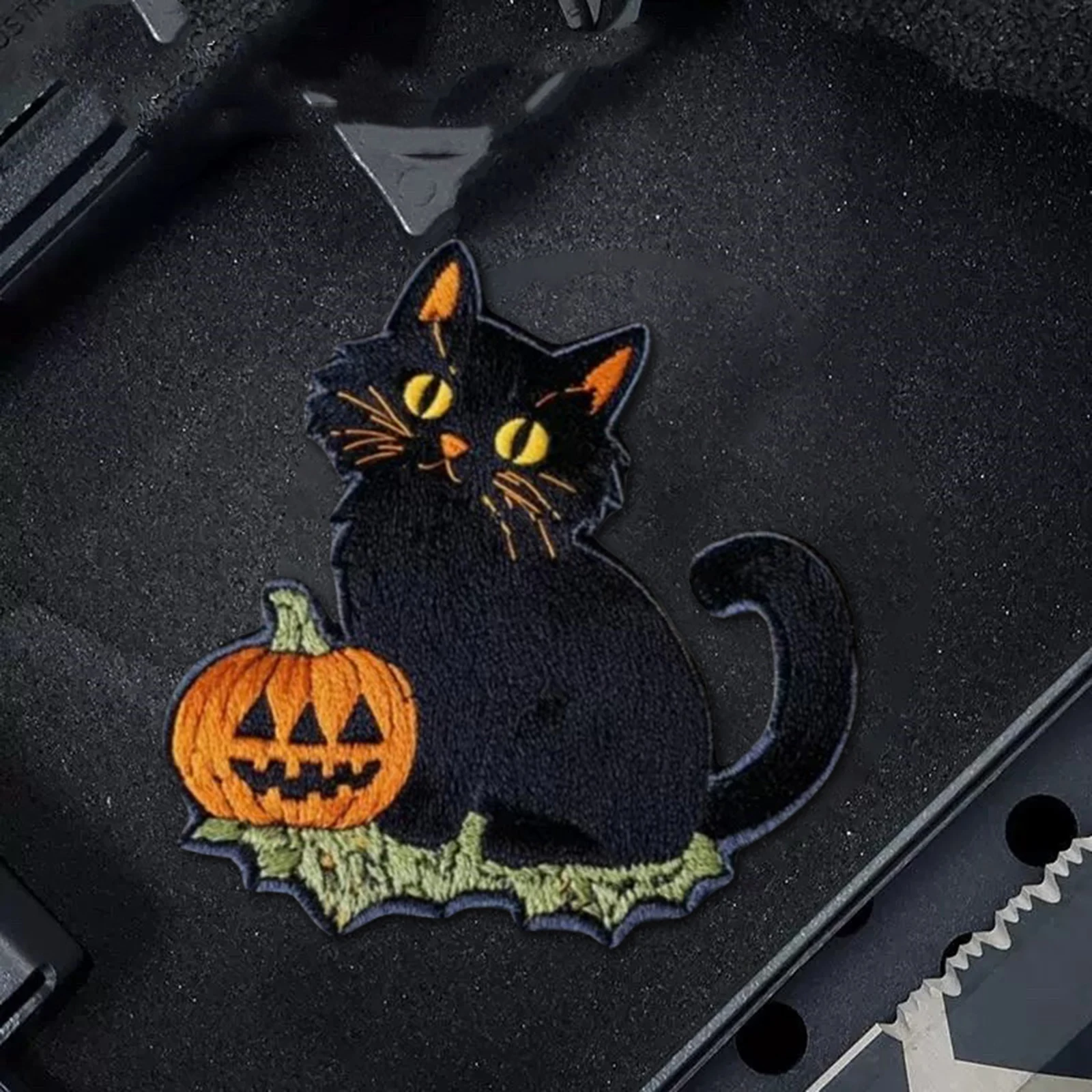 Parche bordado táctico de gato calabaza de Halloween, parche de gancho y bucle de gatos divertidos, insignia de moral, brazalete del ejército militar, pegatinas para mochila