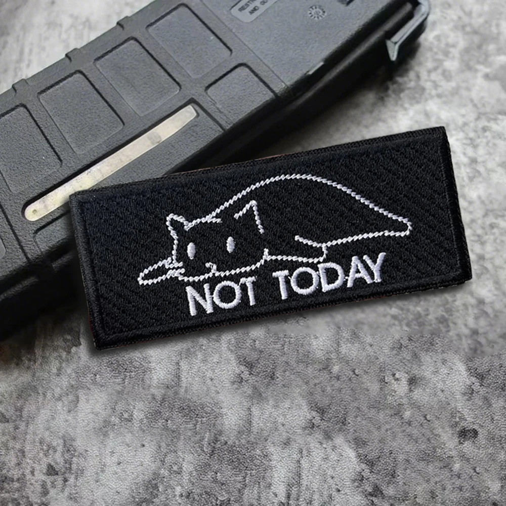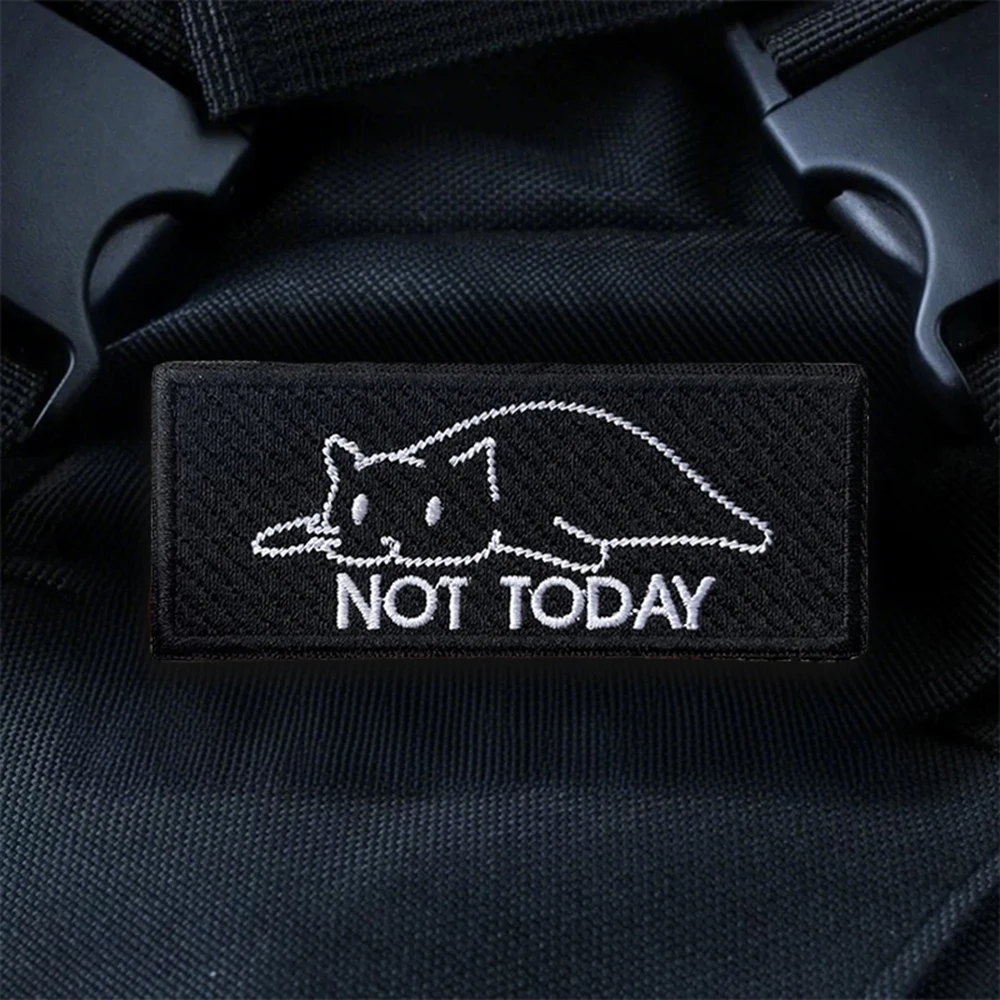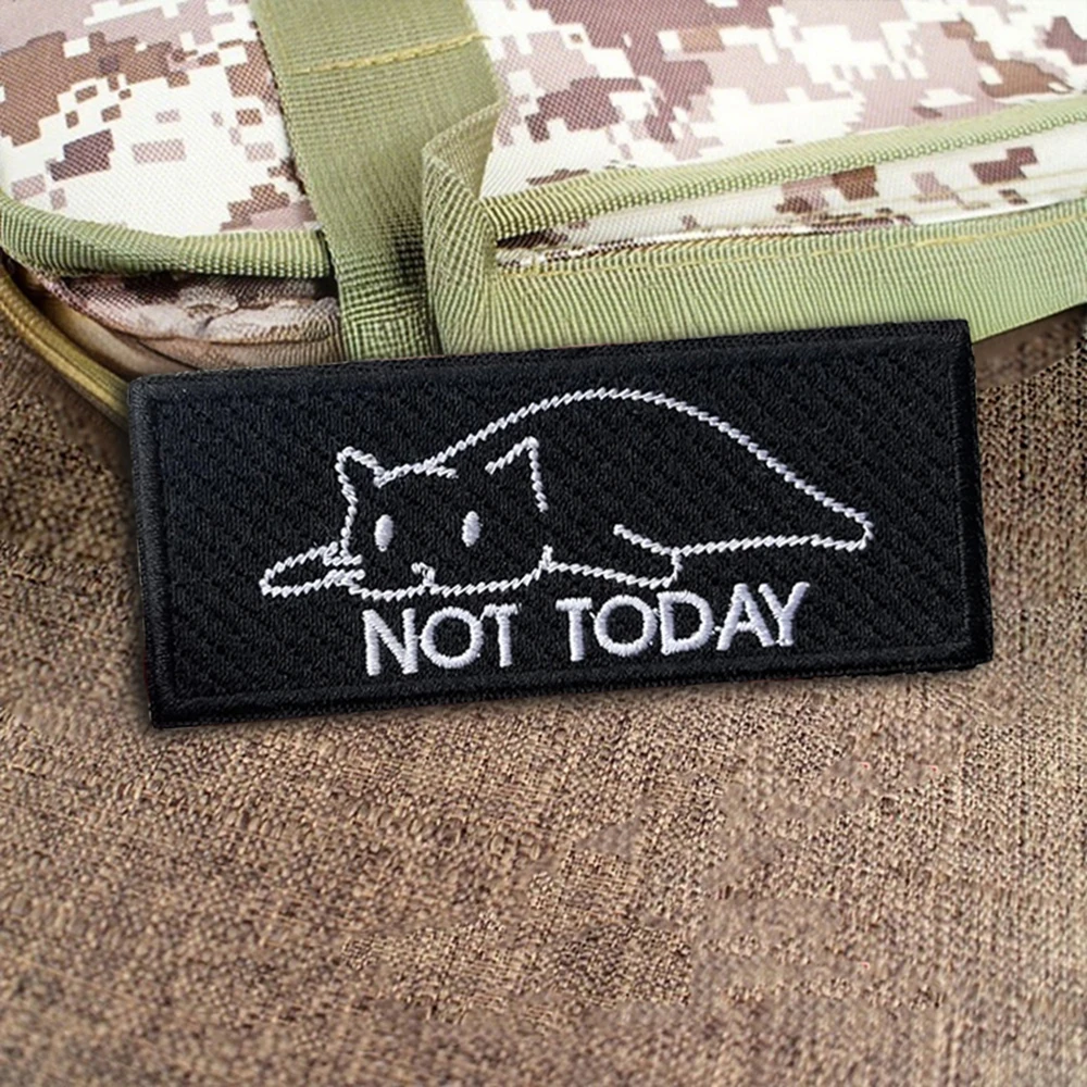 Parche bordado táctico de gato, no hoy, parches divertidos de gancho y bucle, insignia de moral, brazalete del ejército militar, pegatinas para mochila