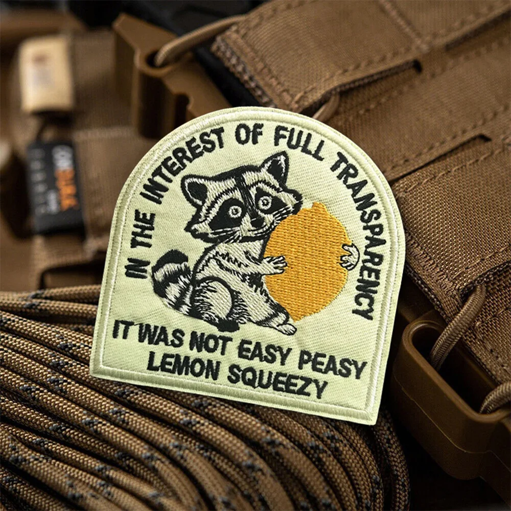 Parche bordado táctico de mapache y limón en ropa, insignia militar de moral, pegatinas para mochila, brazalete con gancho y bucle, aplique para casco