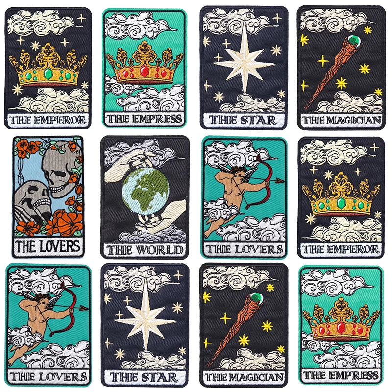 Parche bordado TAROT, parches para planchar para ropa, parches termoadhesivos para ropa, parche de Tarot para ropa, insignias de bucle de gancho