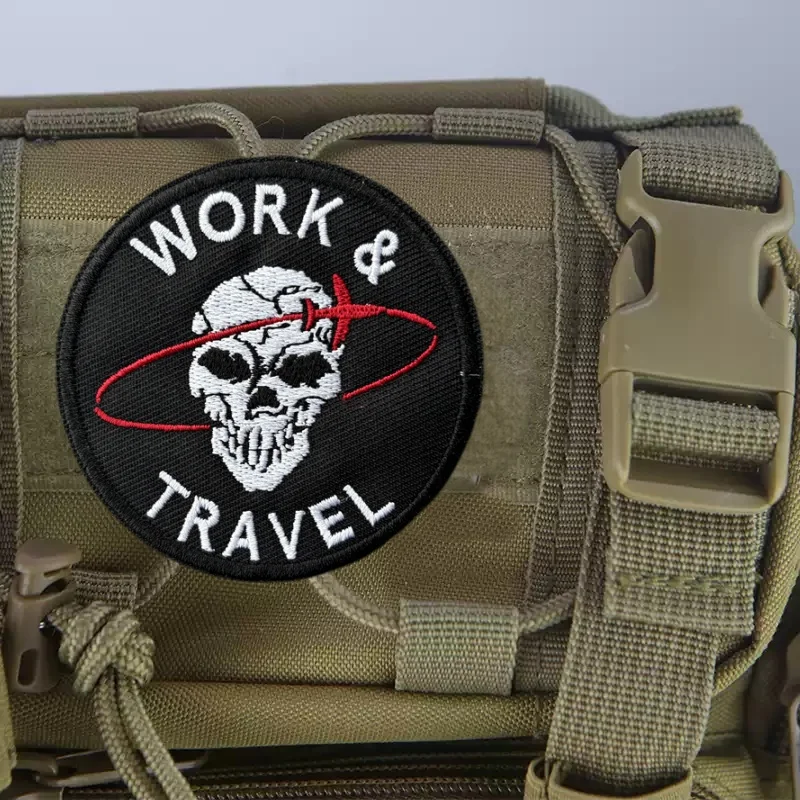 Parche bordado para trabajar y viajes en ropa, insignia táctica de moral, bucle de gancho, parches militares, pegatinas para mochila, brazalete