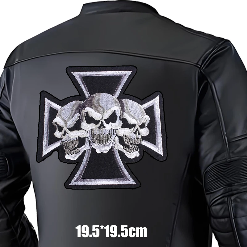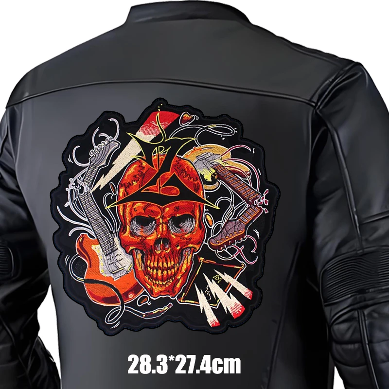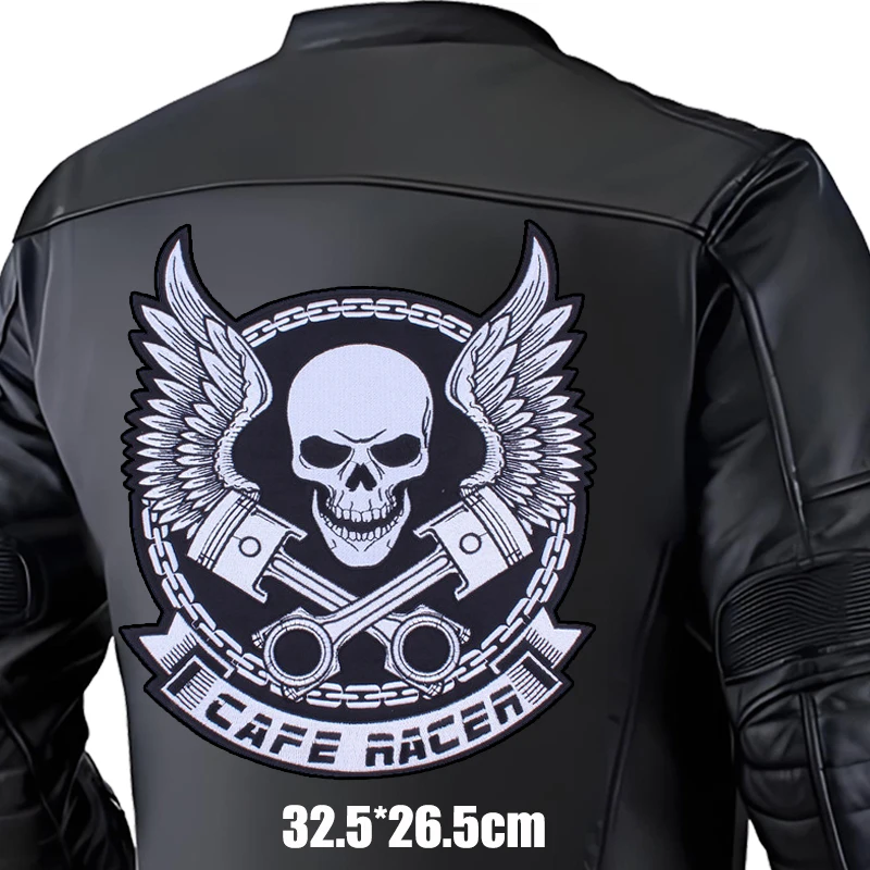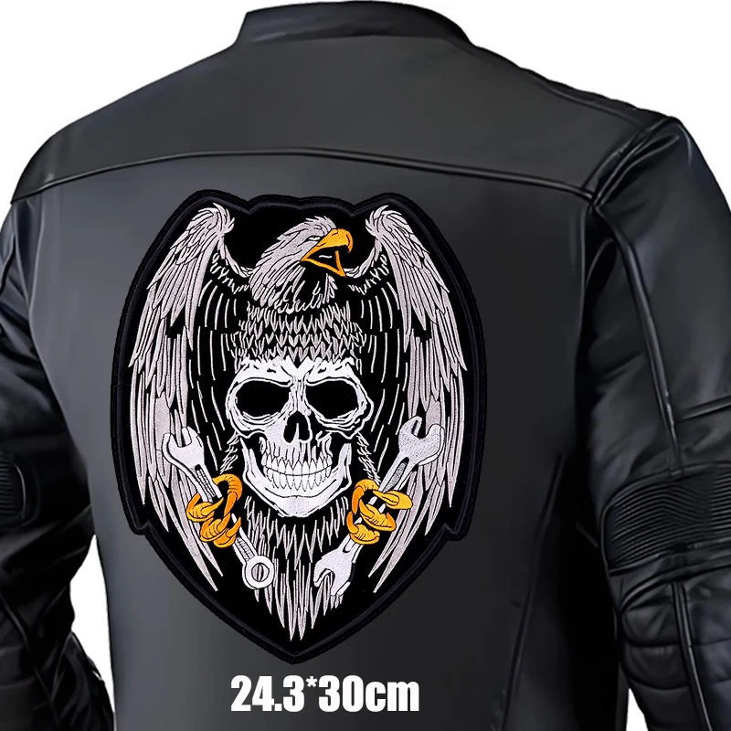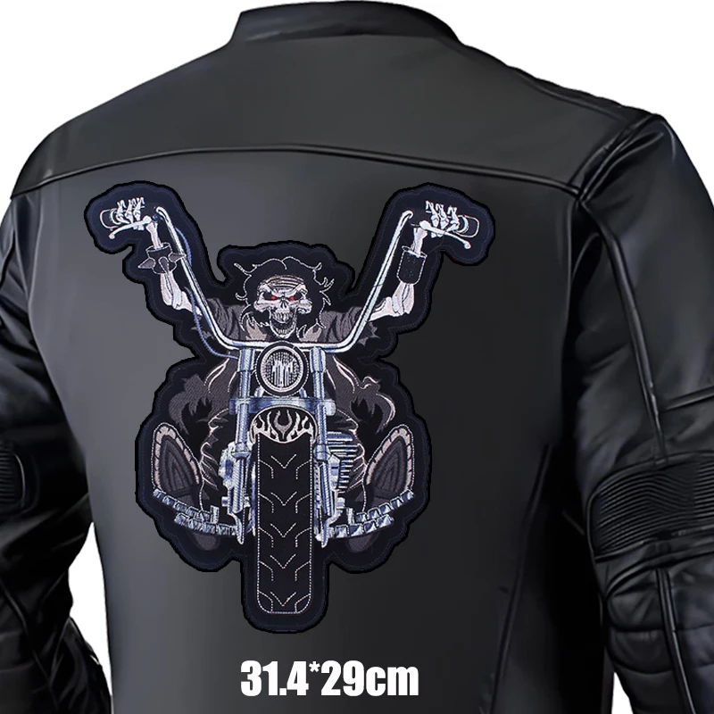 Parche bordado trasero para motociclista Punk grande, chaquetas de cuero, parches bordados, parches para planchar para ropa, insignias DIY