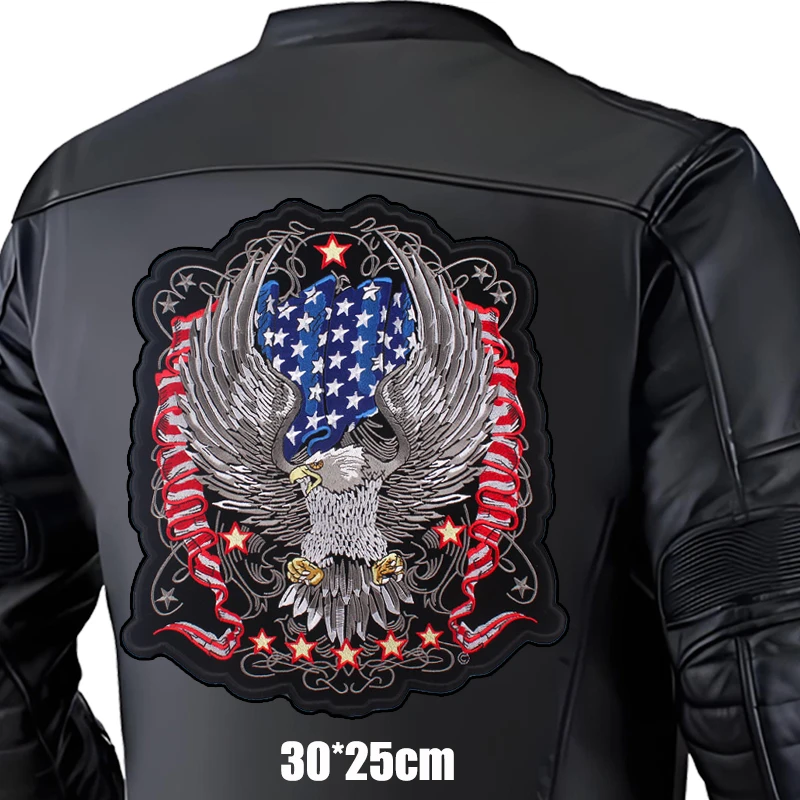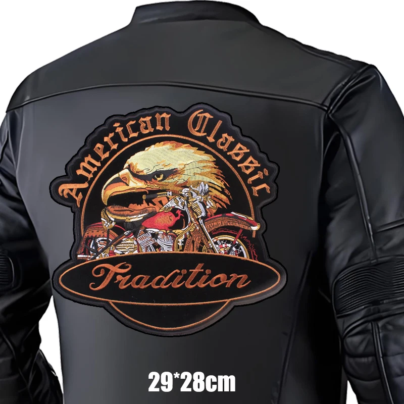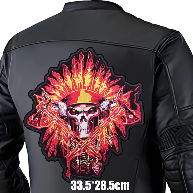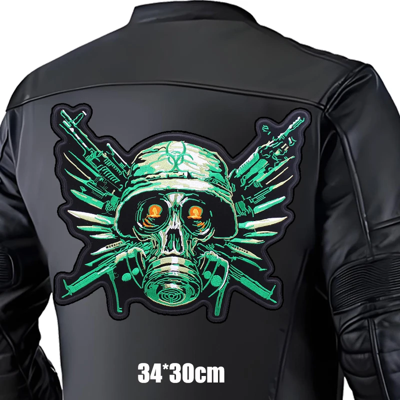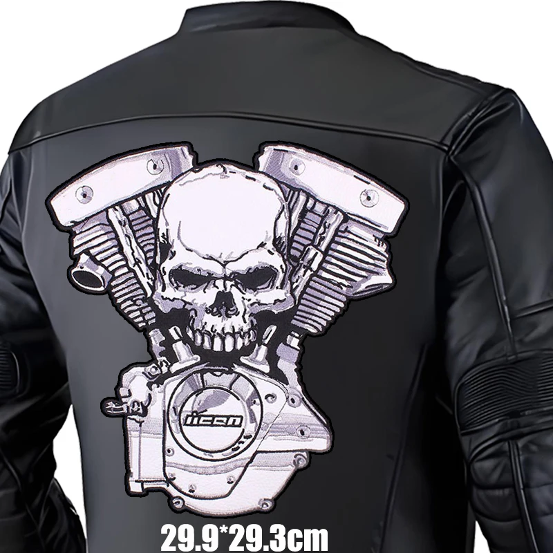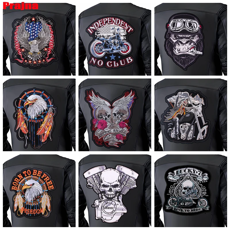 Parche bordado trasero para motociclista Punk grande, chaquetas de cuero, parches bordados, parches para planchar para ropa, insignias DIY