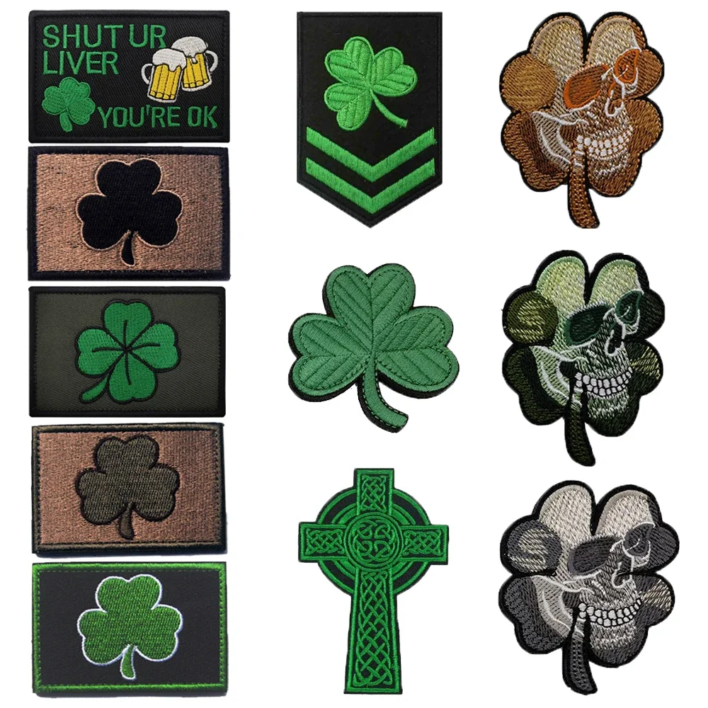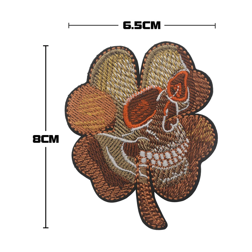 Parche bordado de trébol, insignia de Calavera, gancho y bucle, insignia de moral Punk, DIY, ropa, mochila, decoración, parche de tela militar