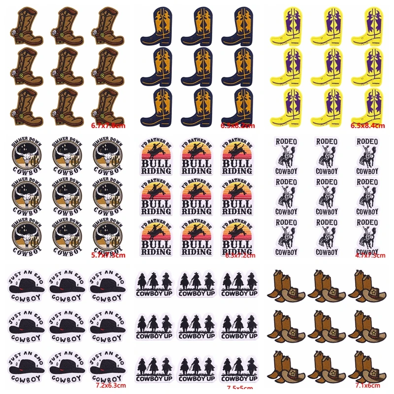 10 unids/lote Wilderness Cowboy parche bordado hierro en parches para ropa vaquero bota herradura parches bordados en ropa