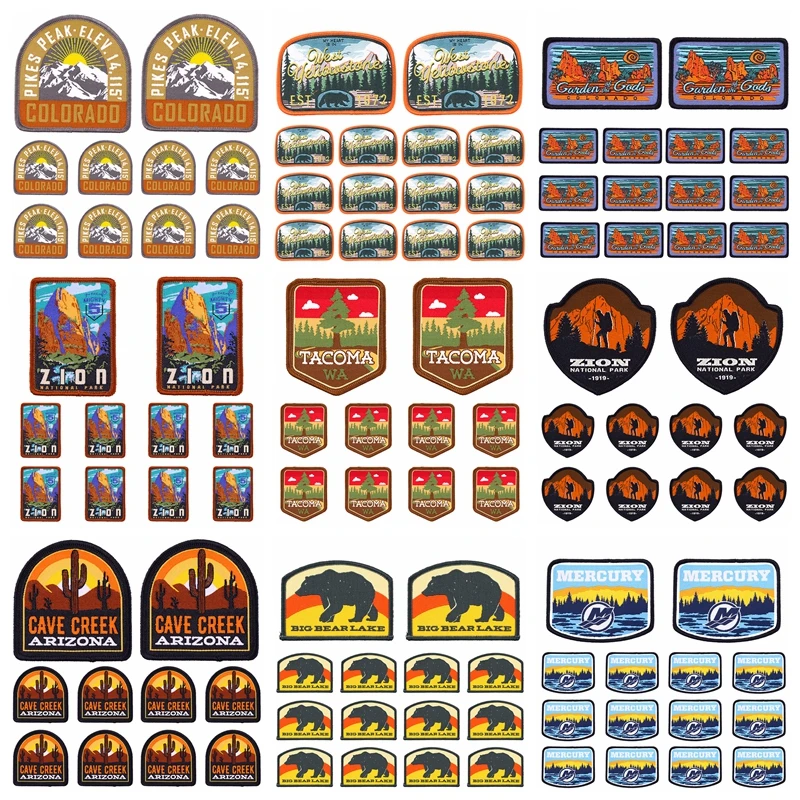 Parche bordado de viaje de montaña, parches de paisaje Natural en la ropa, parches de Camping para ropa, pegatina de costura de chaqueta, 10 unids/lote