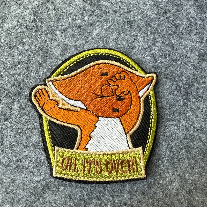 Adorable parche bordado de zorro "¡Oh, ha terminado!" Parche táctico de gancho y bucle Insignia militar de moral pulsera de combate pegatinas para mochila