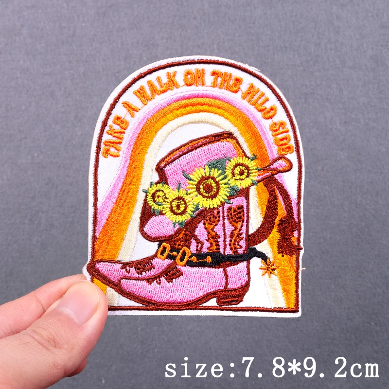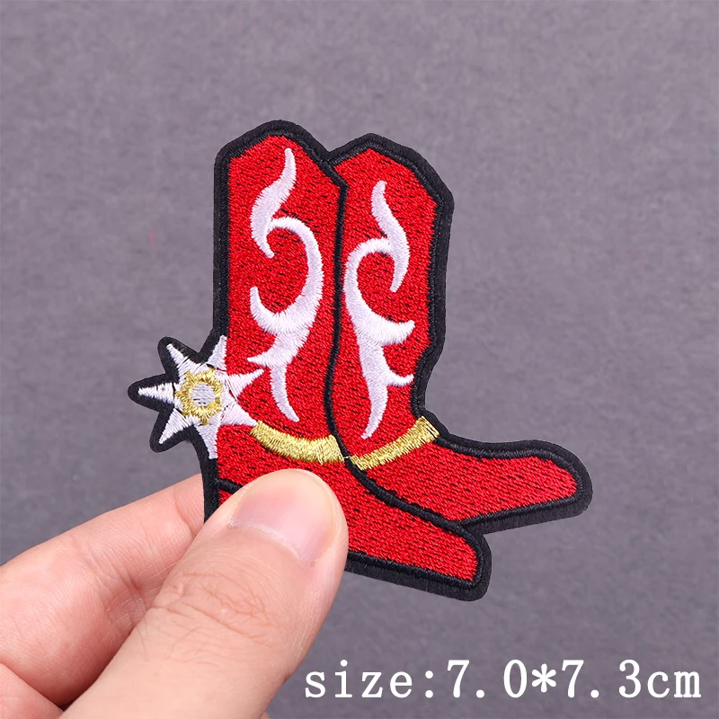 Parche de botas de vaquero occidentales, parches bordados de hierro para ropa, parches termoadhesivos en ropa, insignia de rayas, pegatinas decorativas