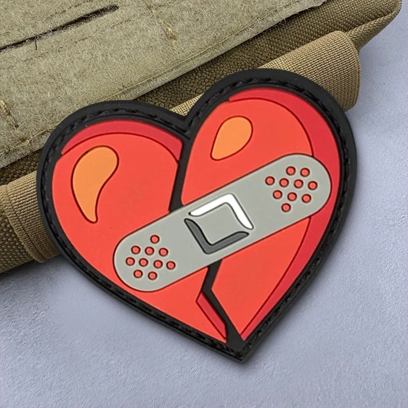 Parche para brazalete de corazón agrietado en ropa, divertido insignia de moral táctica de PVC, parches de bucle de gancho, pegatinas para mochila militar
