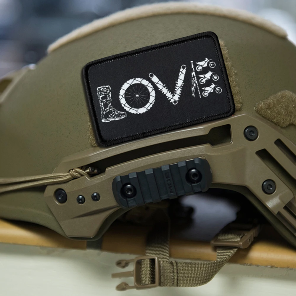 Parche de brazalete impreso para motocicleta "LOVE" en ropa, insignia táctica divertida de moral, parches de bucle de gancho, pegatinas militares para mochila