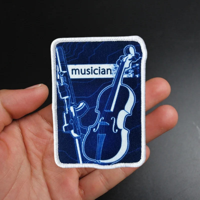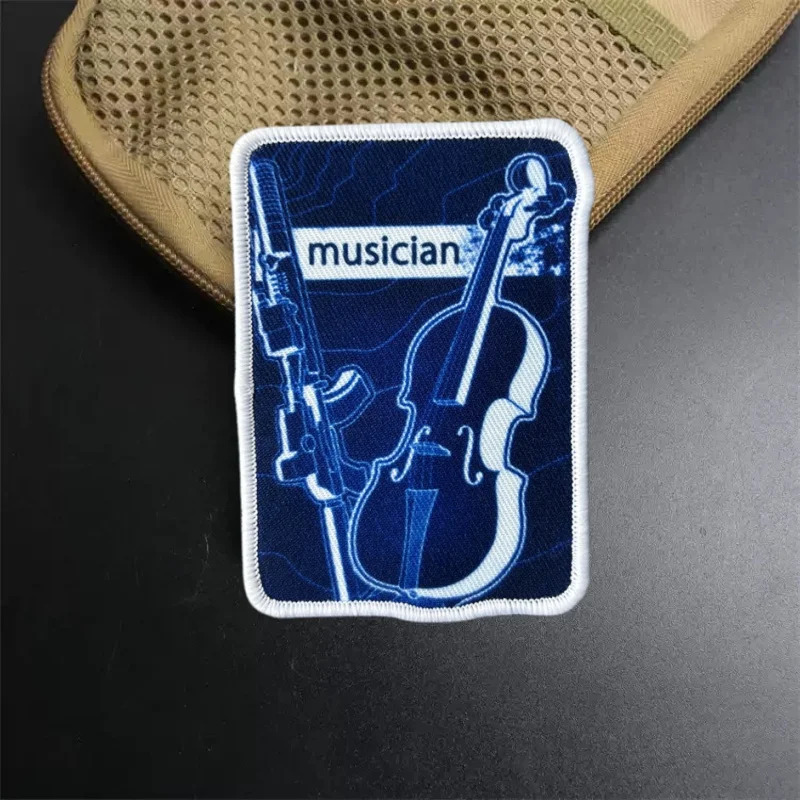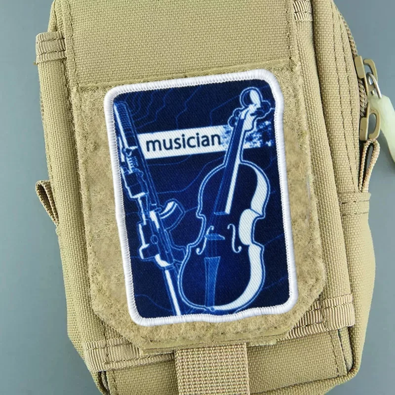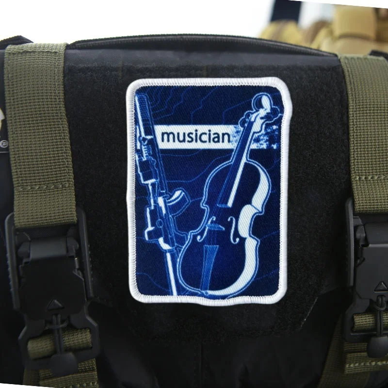 Parche para brazalete con estampado de músico, insignia de moral táctica, parche militar con gancho, pegatinas para mochila, apliques para ropa