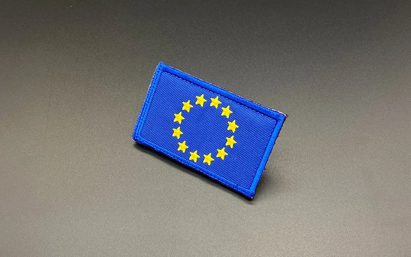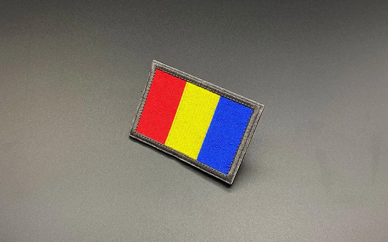 1. Pon el parche en tu tela, con el lado bordado hacia arriba.