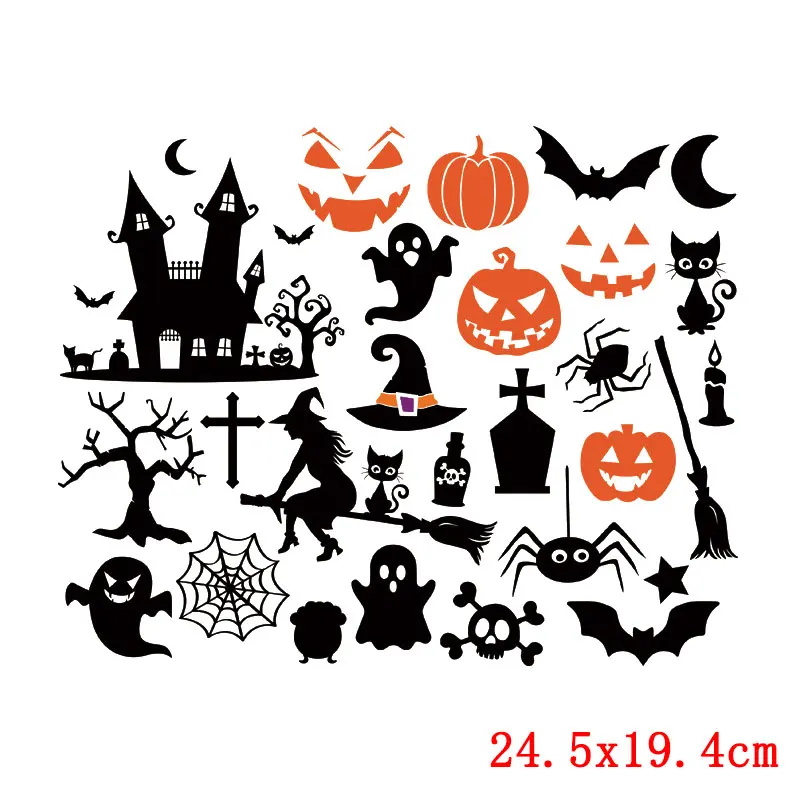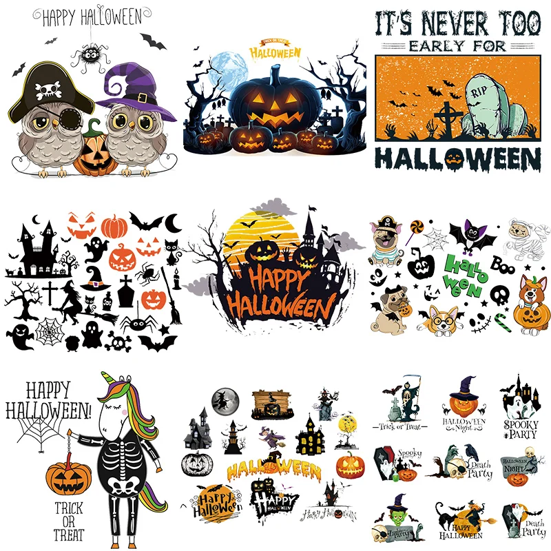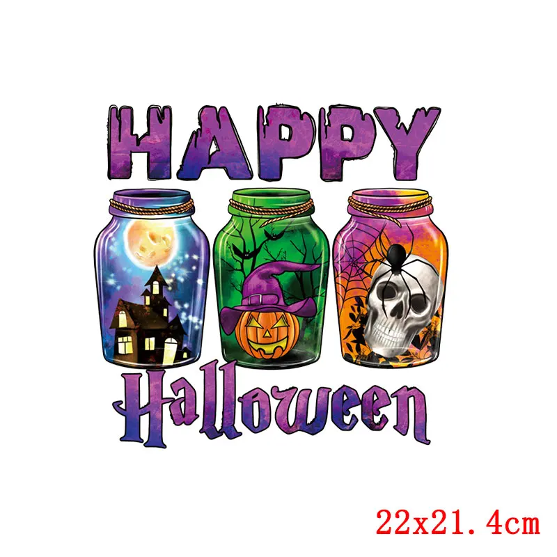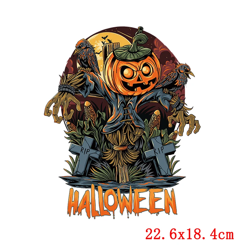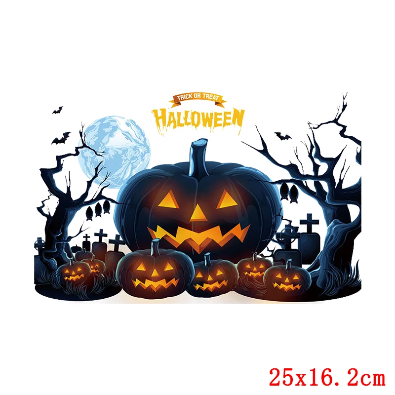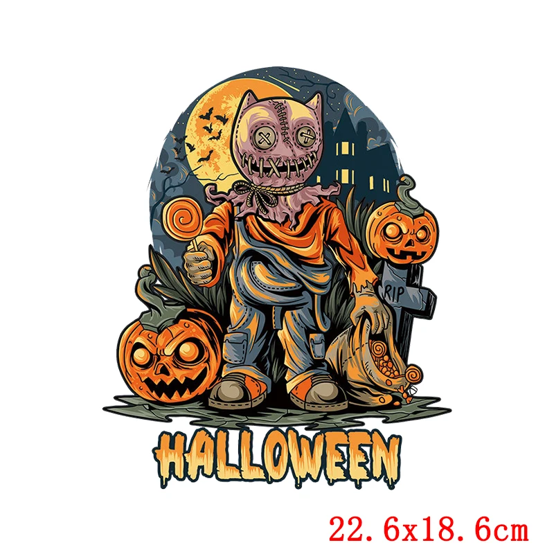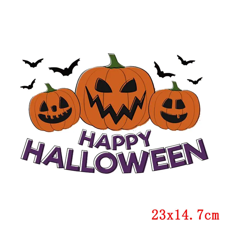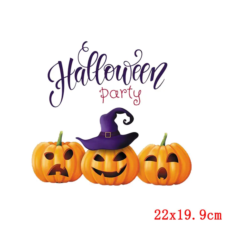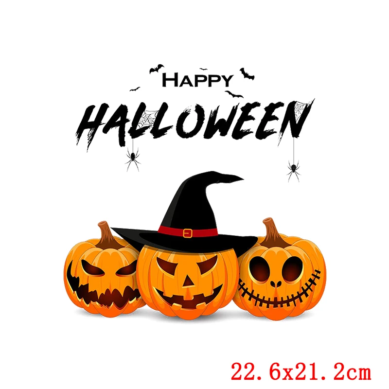 Parche de cabeza de calabaza, transferencia de hierro para ropa, Transferencia Térmica de Halloween para ropa, apliques de vinilo, pegatina térmica en la ropa
